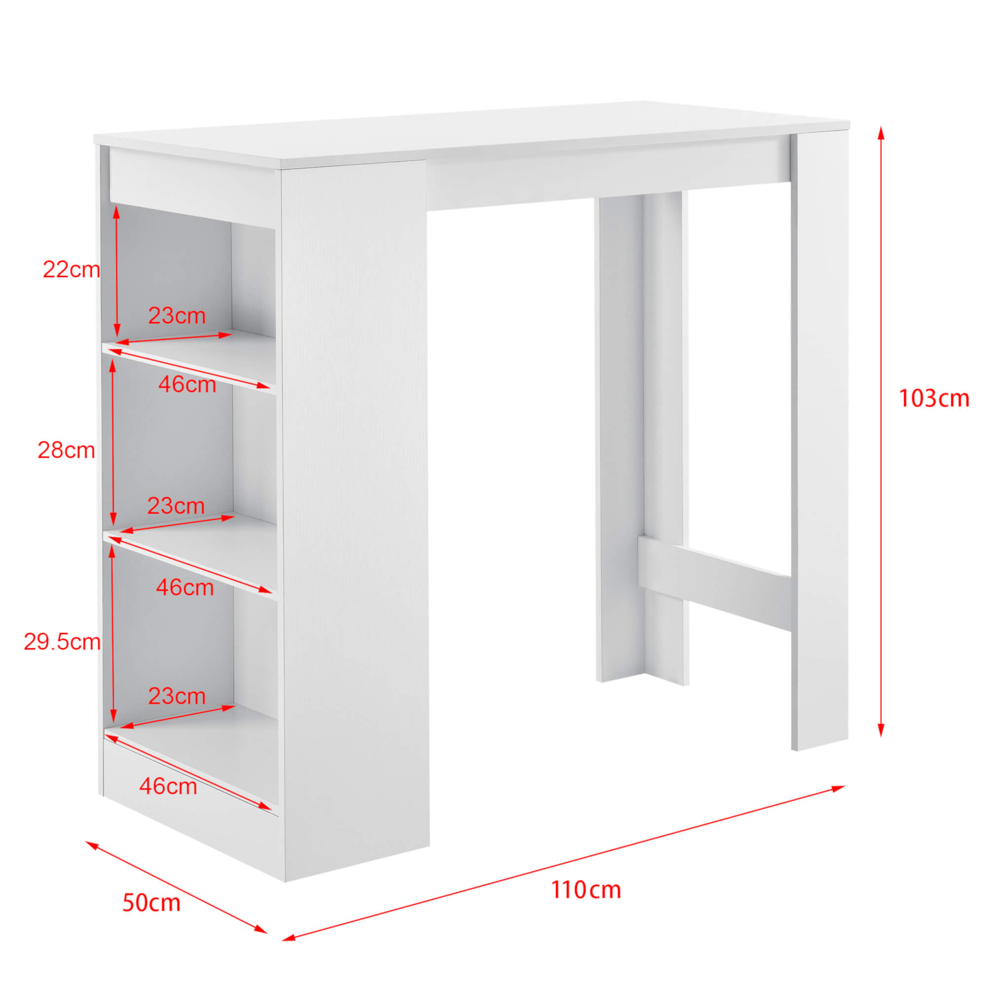 Bartisch Kouvala 110x50x103 cm Hausbar mit 3 Fächern Weiss
