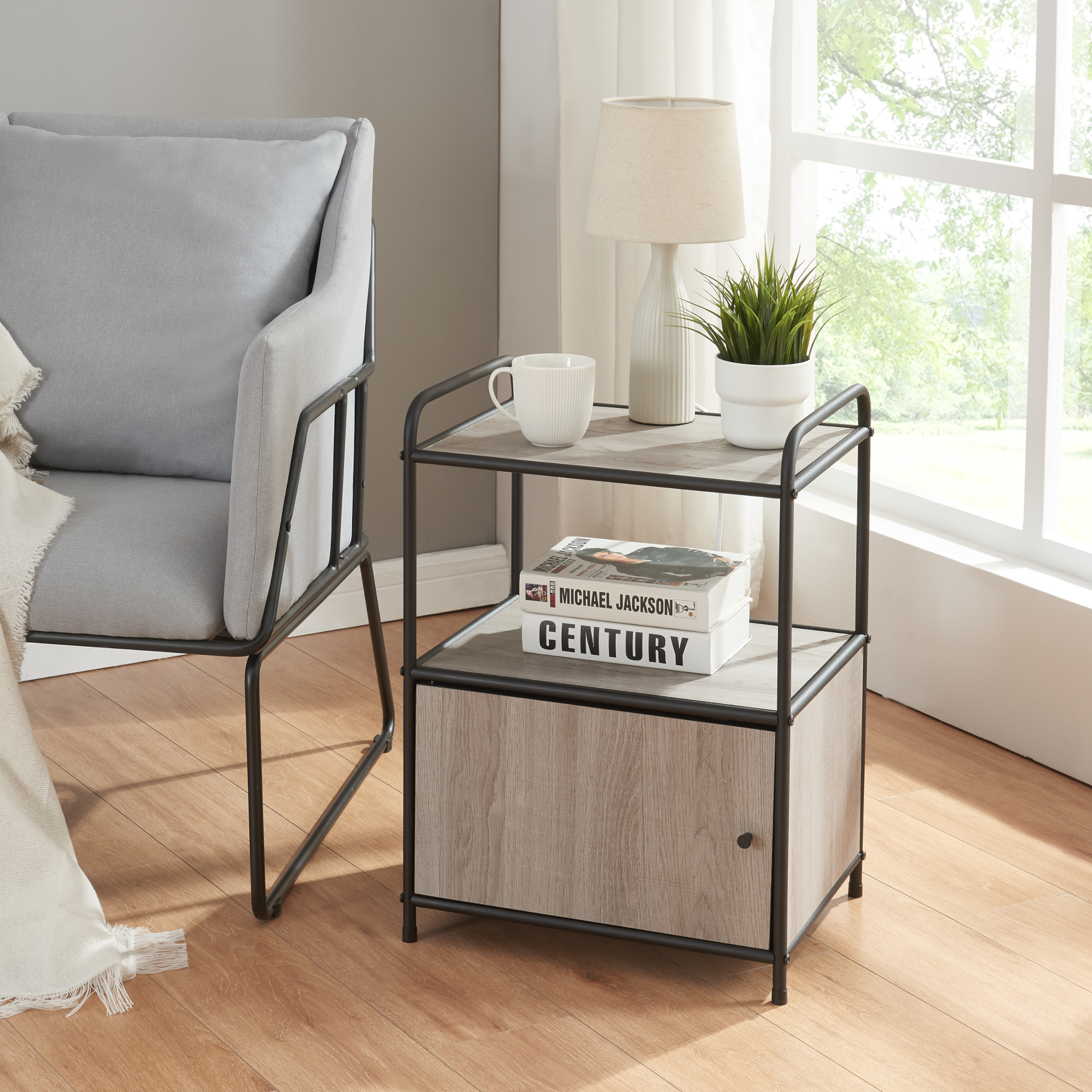 Die Tischplatte und die untere Ablage bieten ausreichend Platz für Ihre Fernbedienung, Bücher, Zeitschriften und andere persönliche Gegenstände. Sie können Snacks und Getränke sicher abstellen, während Sie Ihre Lieblingsserie schauen, oder Ihre aktuelle Lektüre griffbereit halten. Zudem können Sie den Tisch kreativ nutzen, um Dekorationsgegenstände wie Vasen, Kerzen oder Bilderrahmen in Szene zu setzen. Zusätzlich verfügt der Tisch über ein Ablagefach mit einer Schranktür, sodass Sie weitere Gegenstände im Inneren verstauen können.