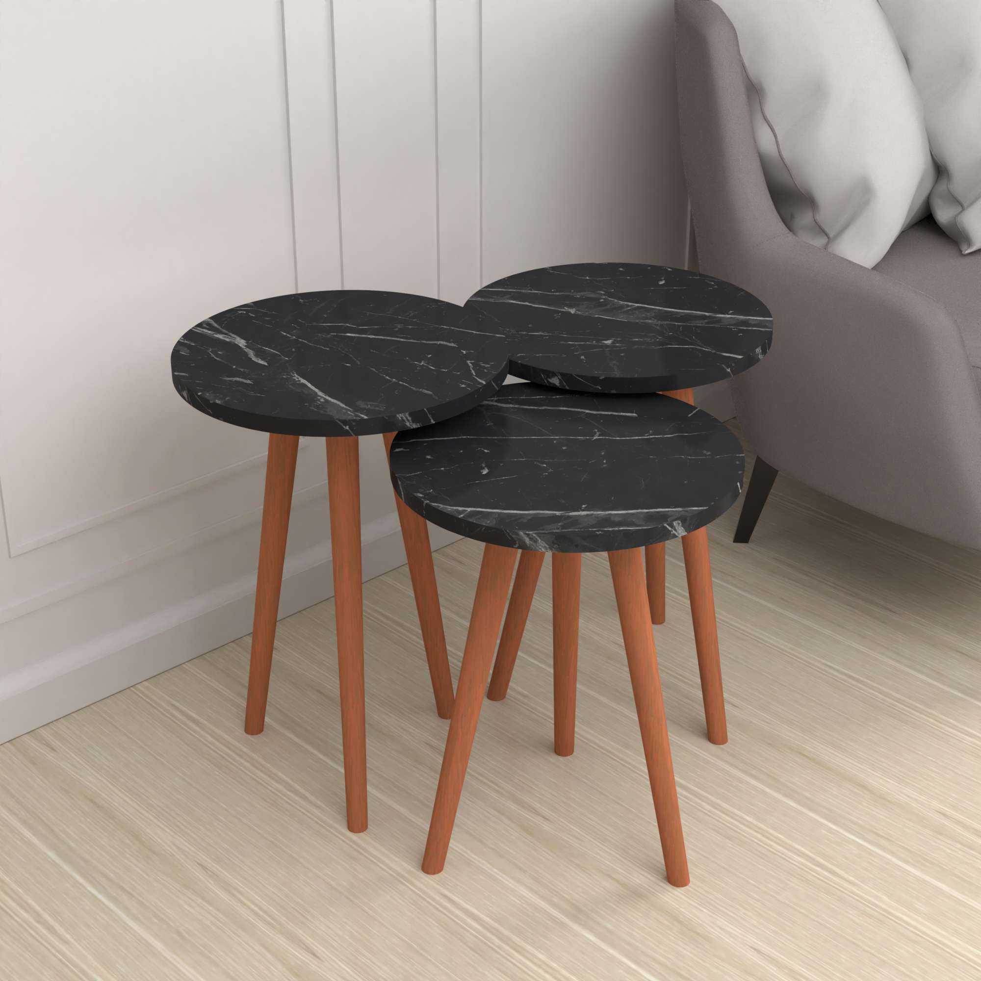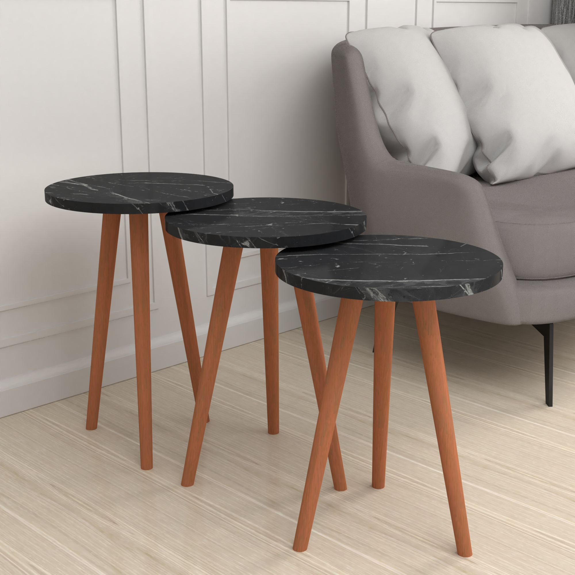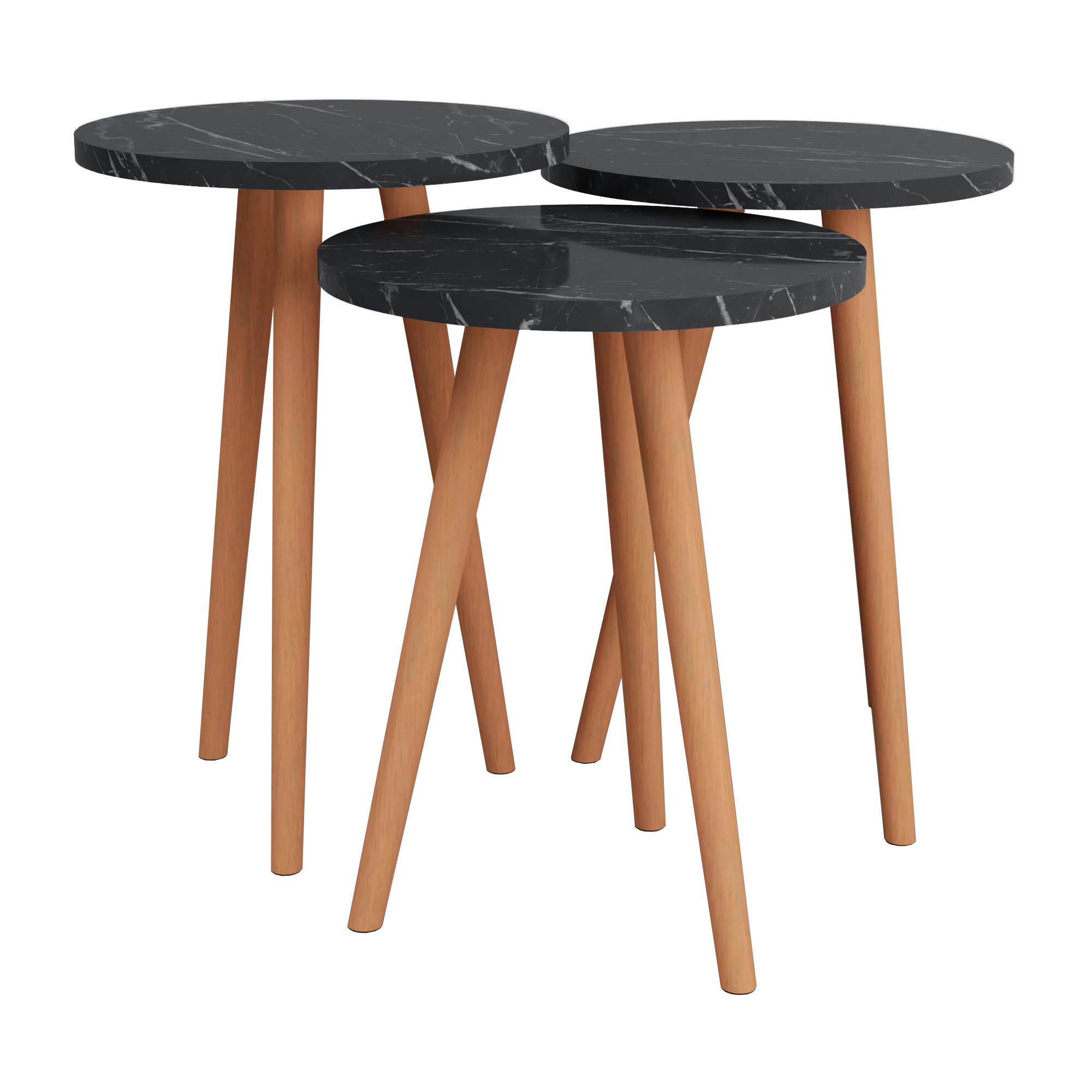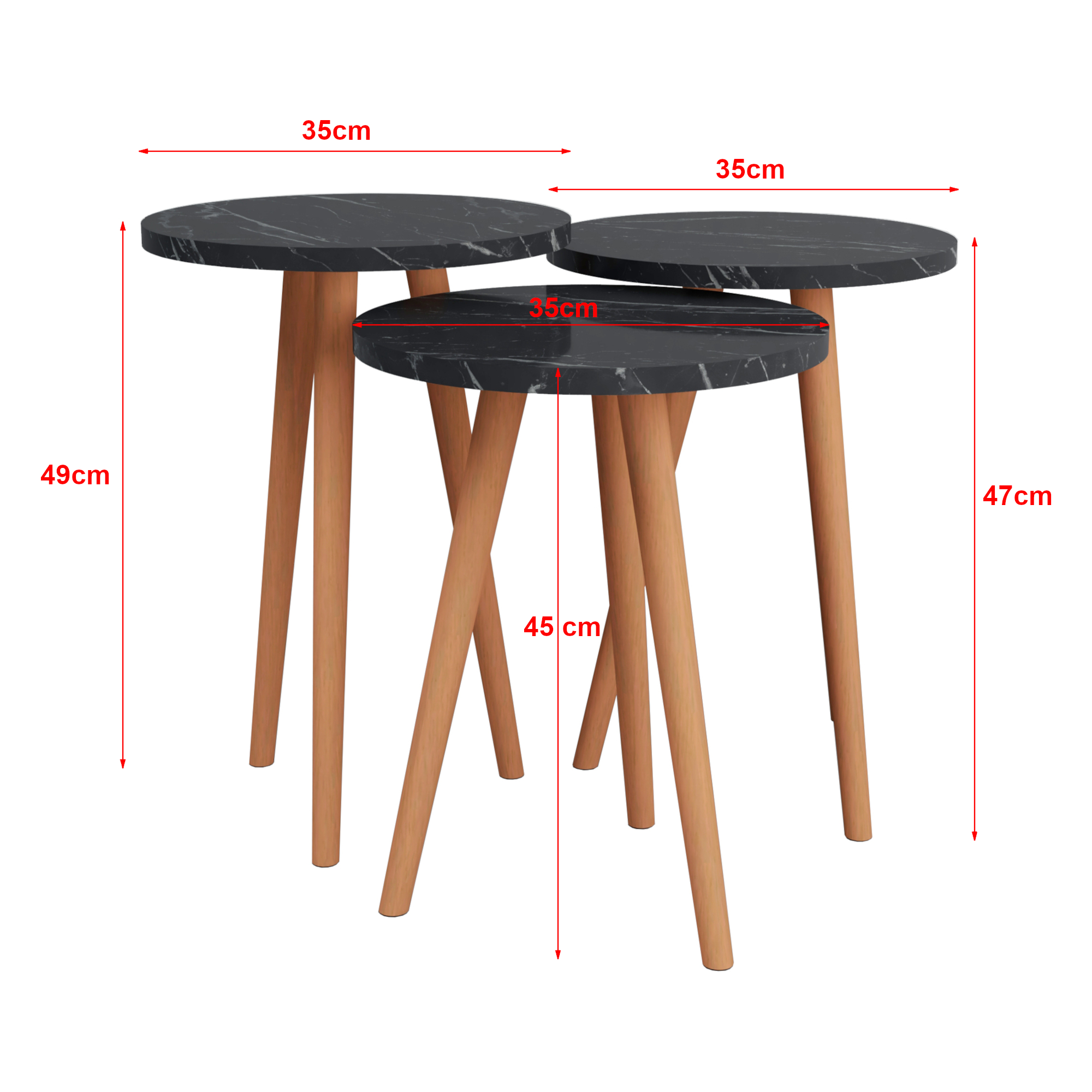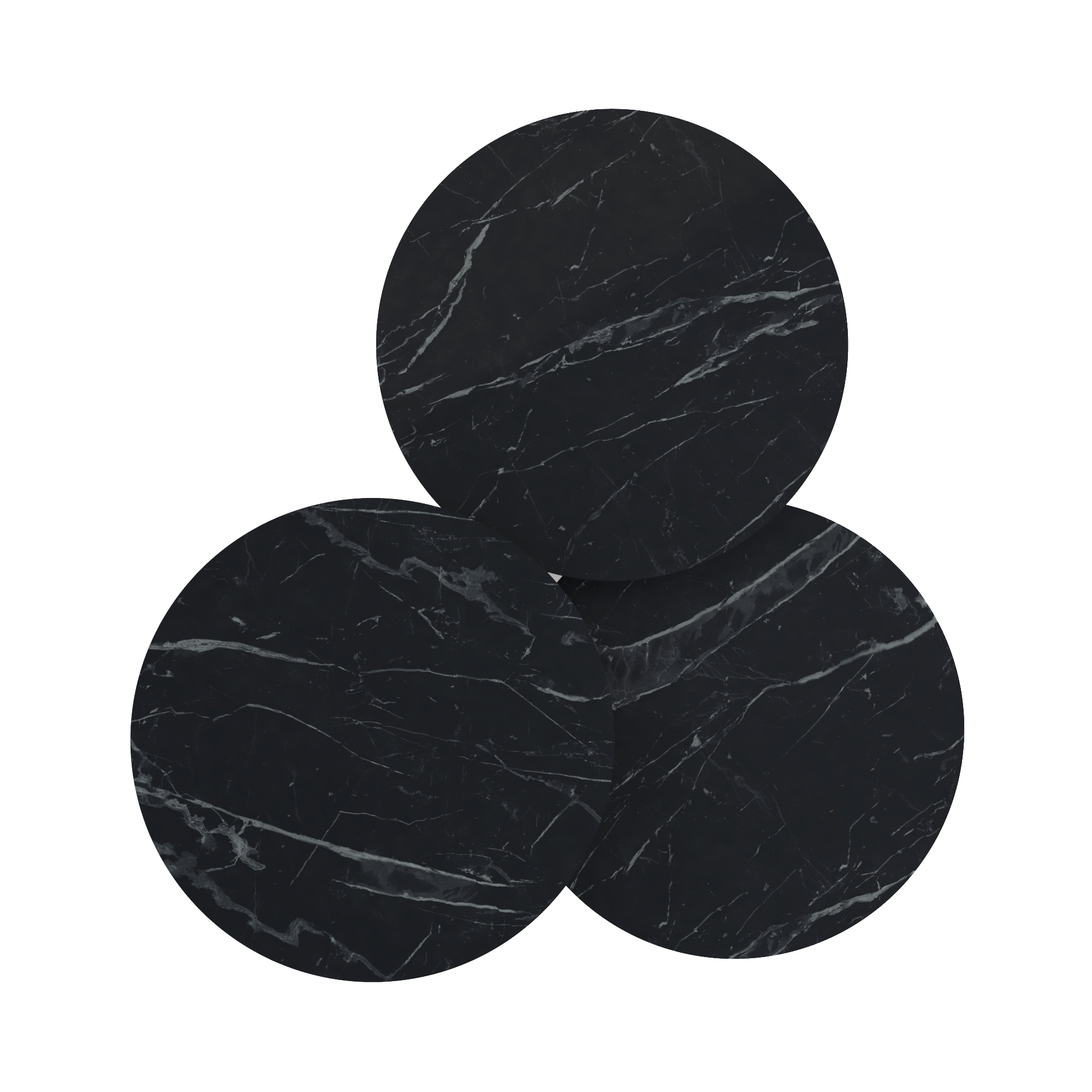 Beistelltisch Set Herrljunga im 3er Set rund Marmoroptik. schwarz