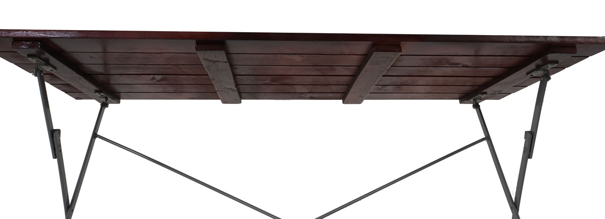 Klappen und – Action! Dieser Tisch ist der ideale Begleiter für alle, die Flexibilität lieben. Aufgrund des verwendeten 3mm-Flacheisens (üblich sind nur 0,8mm!) gehen minimales Gewicht und maximale Stabilität bei diesem Produkt Hand in Hand, während die kinderleicht zu handhabende Klappfunktion für ein fast lächerlich geringes Packmaß sorgt.