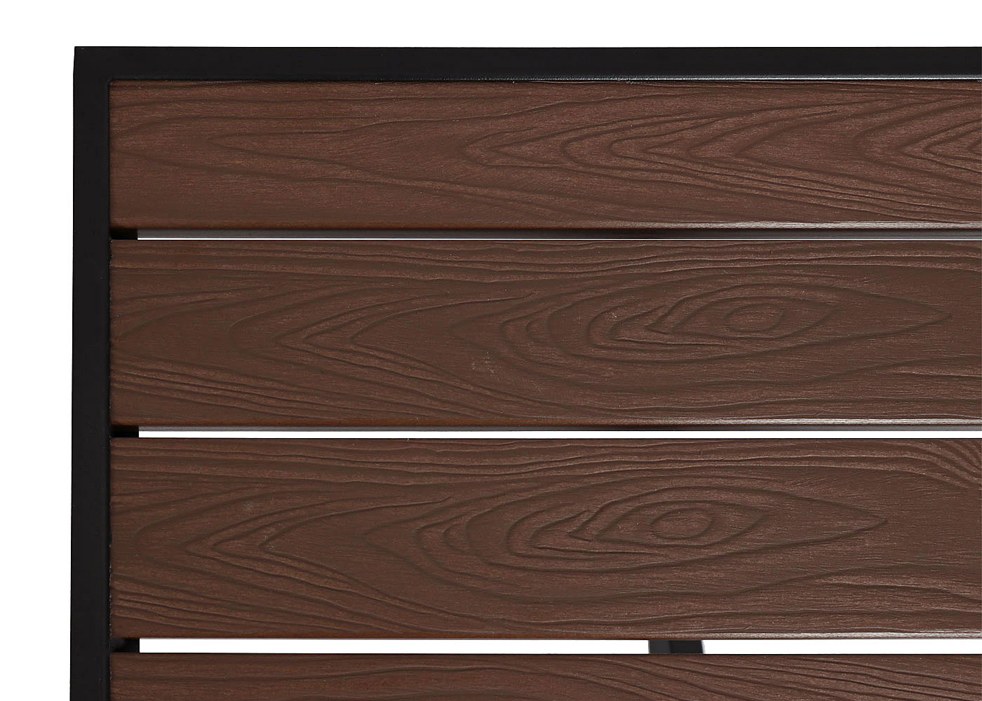 Egal, ob im Garten, auf der Terrasse oder im Wintergarten – dieser Tisch ist ein echter Hingucker und fügt sich mit seinem unaufdringlichen Design in jede Umgebung ein. Mit der zusätzlichen Outdoor-geeigneten Beschichtung ist er besonders widerstandsfähig gegenüber Witterungseinflüssen. Der Outdoortisch überzeugt durch sein robustes, aber trotzdem leichtes Material. Zudem setzt die Materialkombination aus hochwertigem Kunststoff in Holzoptik und Aluminium fabelhafte Akzente. Durch seine stabile Konstruktion bietet dieser Tisch außerdem einen sicheren Stand. Freuen Sie sich auf die warmen Sommertage und genießen Sie Ihre Zeit im Grünen, oder auch im Haus an diesem Gartentisch. Ideal in Kombination mit unserem Gartenstuhl der Serie HWC-J95.