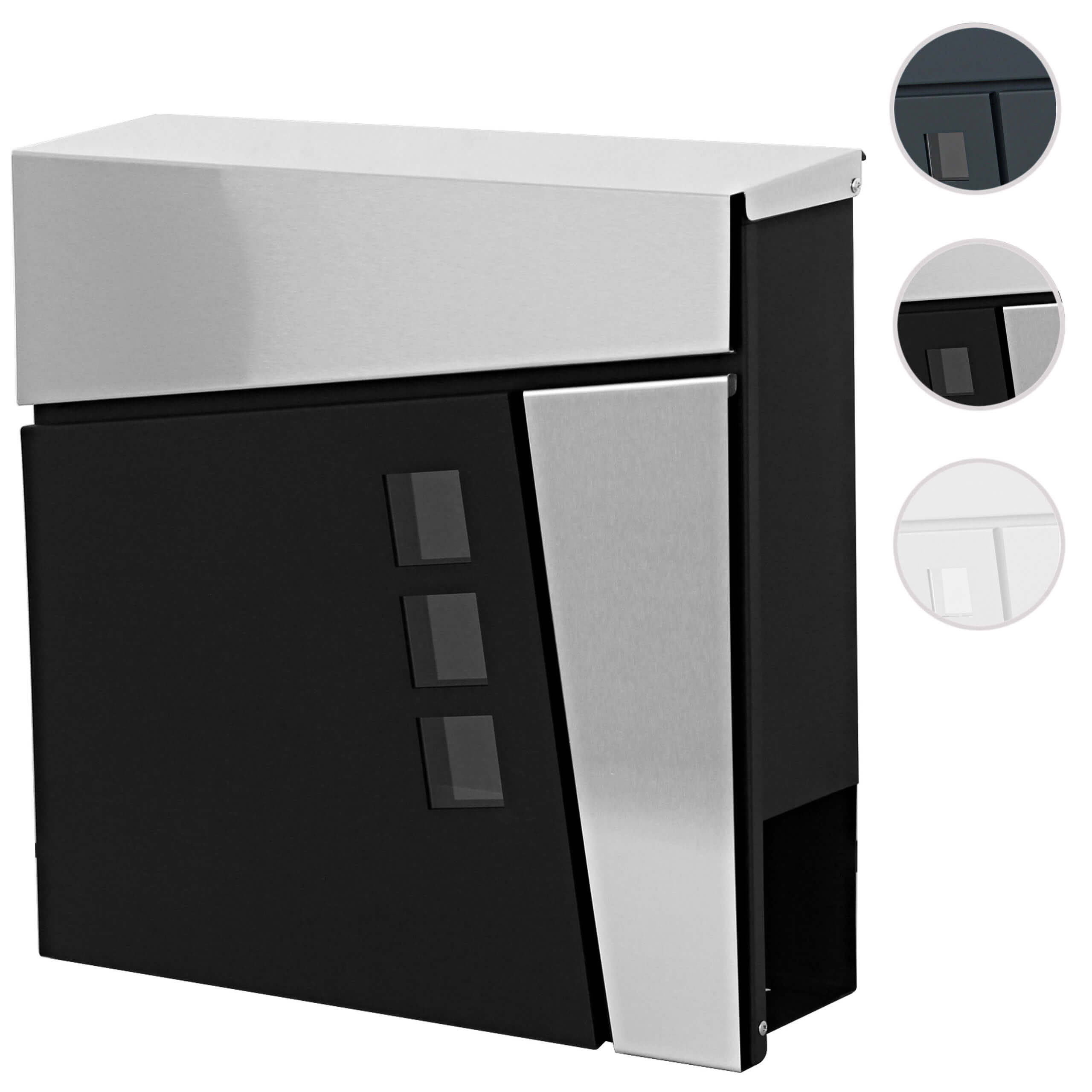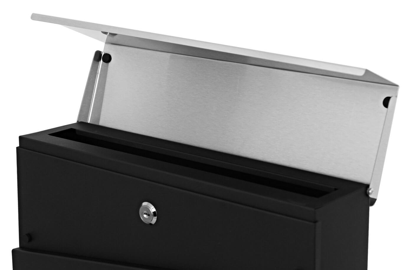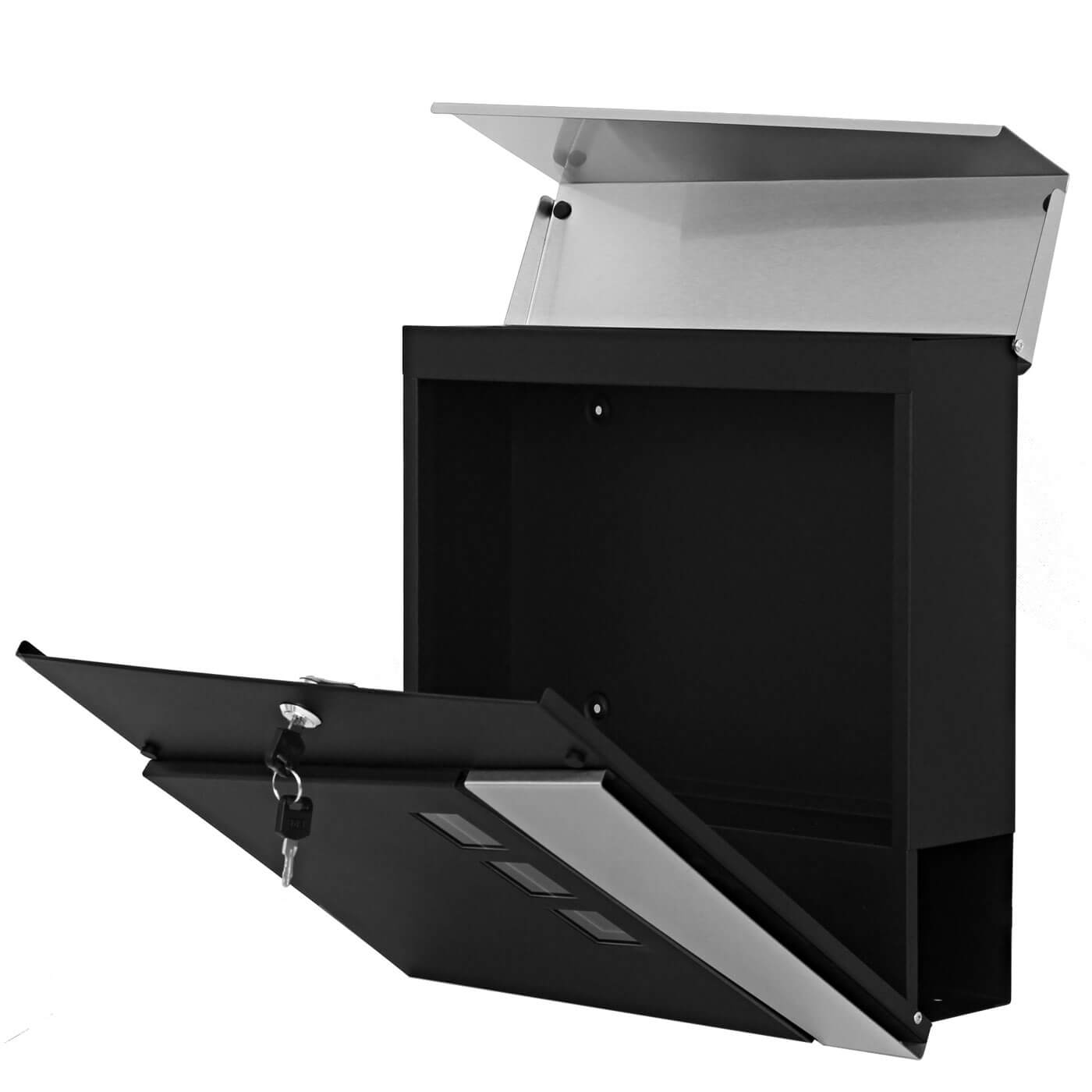 Briefkasten mit Zeitungsfach pulverbeschichtet schwarz/Edelstahl