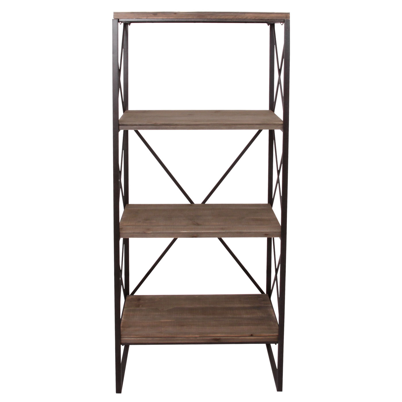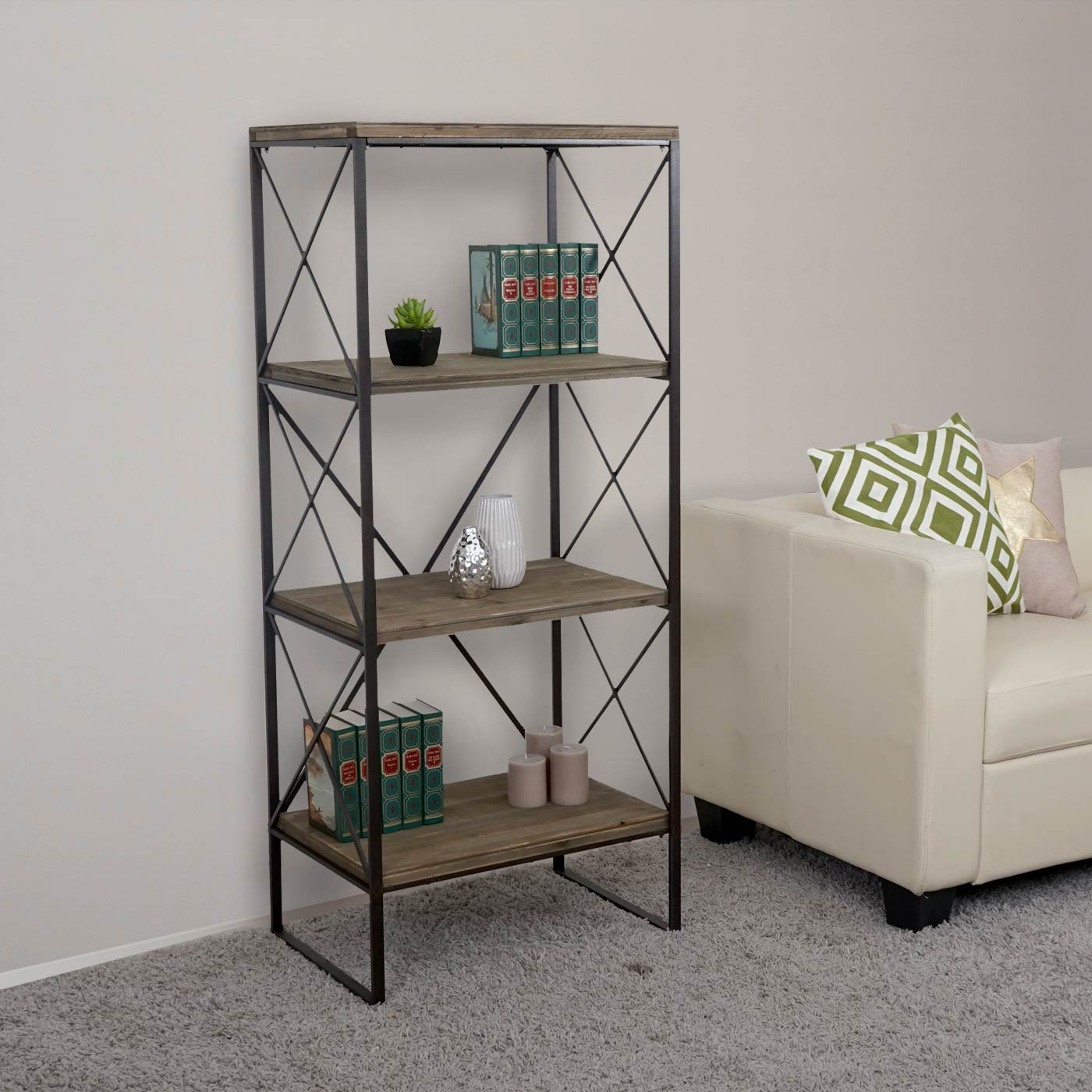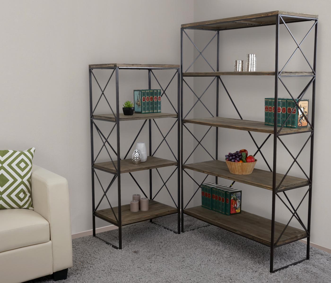 Bücherregal HWC-C10, Standregal Wohnregal, Echtholz Metall ~ 4 Ebenen, 142x60cm