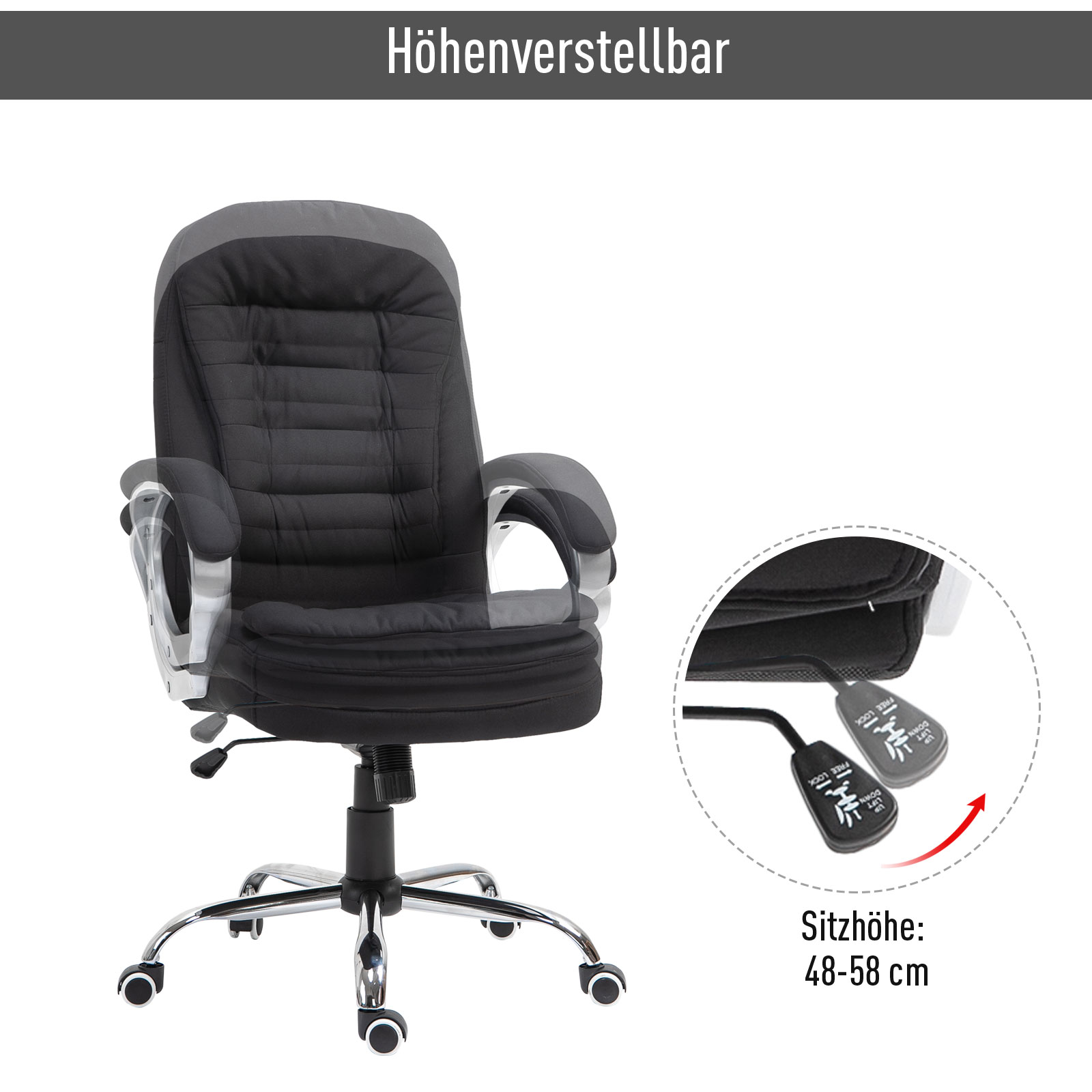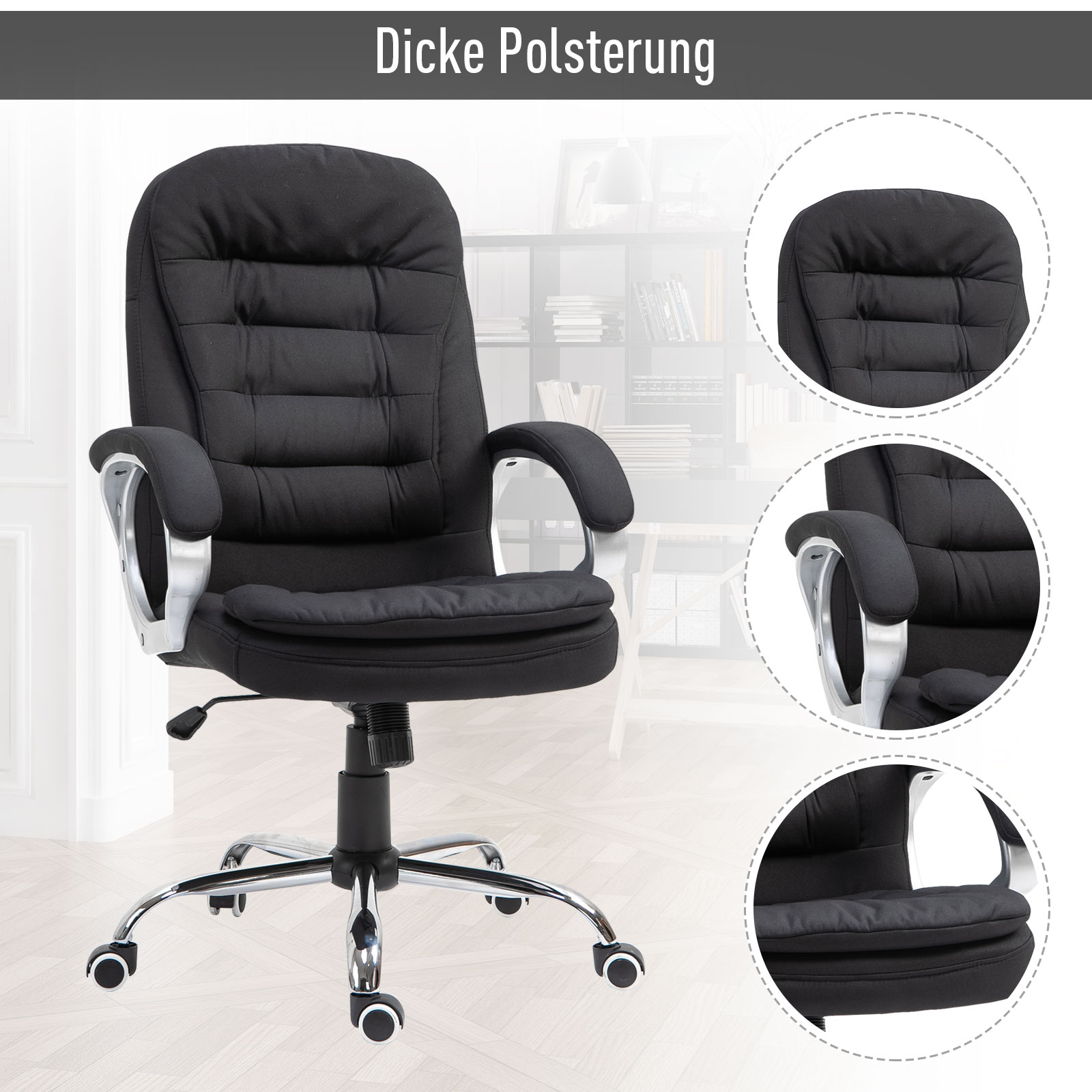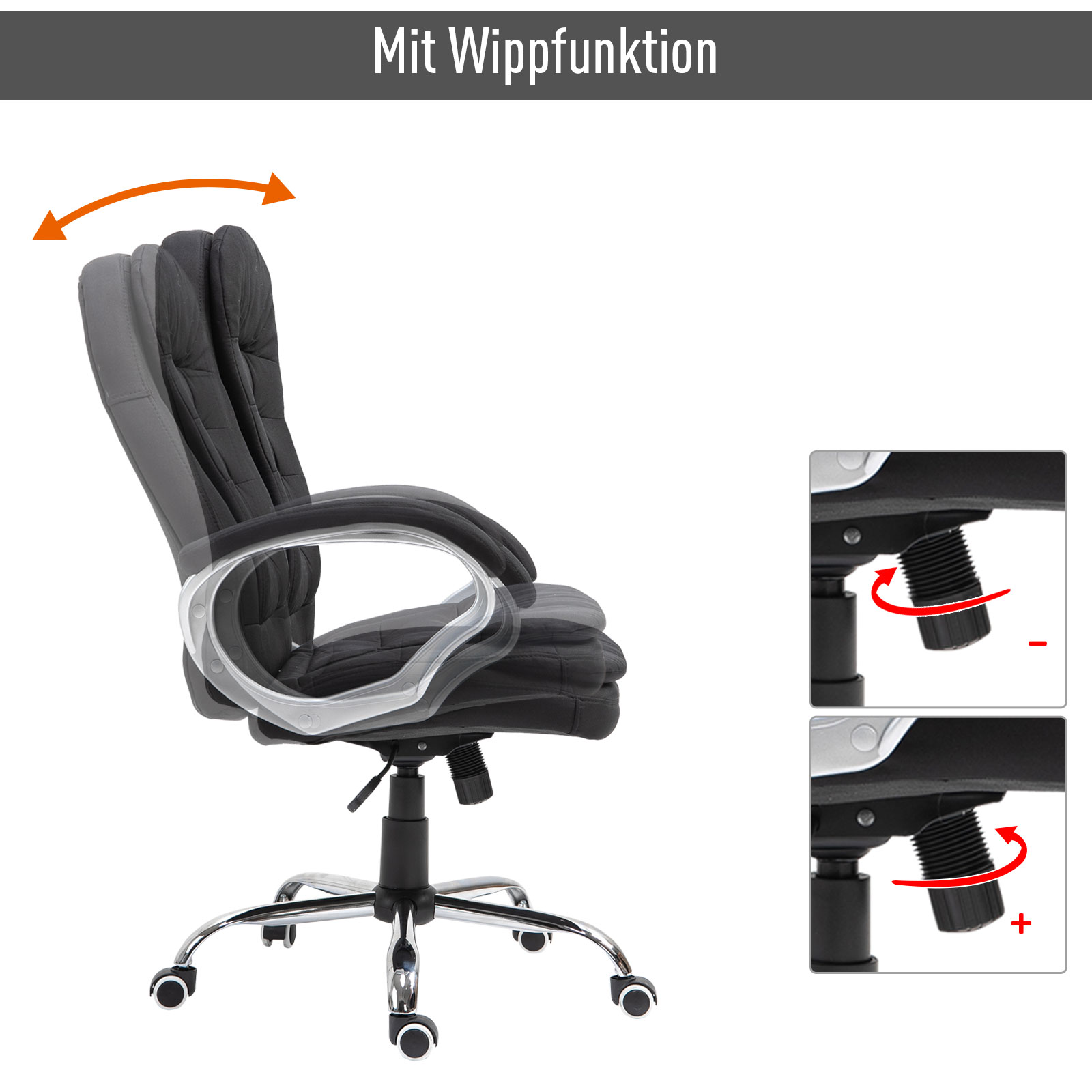 Stressige Arbeitstage, verspannte Muskeln, Kopfschmerzen: Jedes Bürotier braucht unbedingt einen guten Stuhl. Dieser neue Bürostuhl bewahrt Sie jetzt vor den Schmerzen! Die gepolsterte ergonomische Lehne und Sitzfläche beugen effektiv Rücken- und Nackenverspannungen vor, selbst bei langem Sitzen. Der atmungsaktive Leinenbezug sorgt für angenehmes Sitzen bei jeder Temperatur und die schicke Lehne ist mit einer Wippmechanik ausgestattet, kann aber natürlich auch arretiert werden. Die stufenlos einstellbare Sitzhöhe, der breite Sitz und die Belastbarkeit bis 120 kg machen den Stuhl passend für alle Körpergrößen. Mit den leicht laufenden Universalrollen und dem um 360° drehbaren Sitz sind Sie im Büro immer mobil – so wird das Zusammenarbeiten noch bequemer.