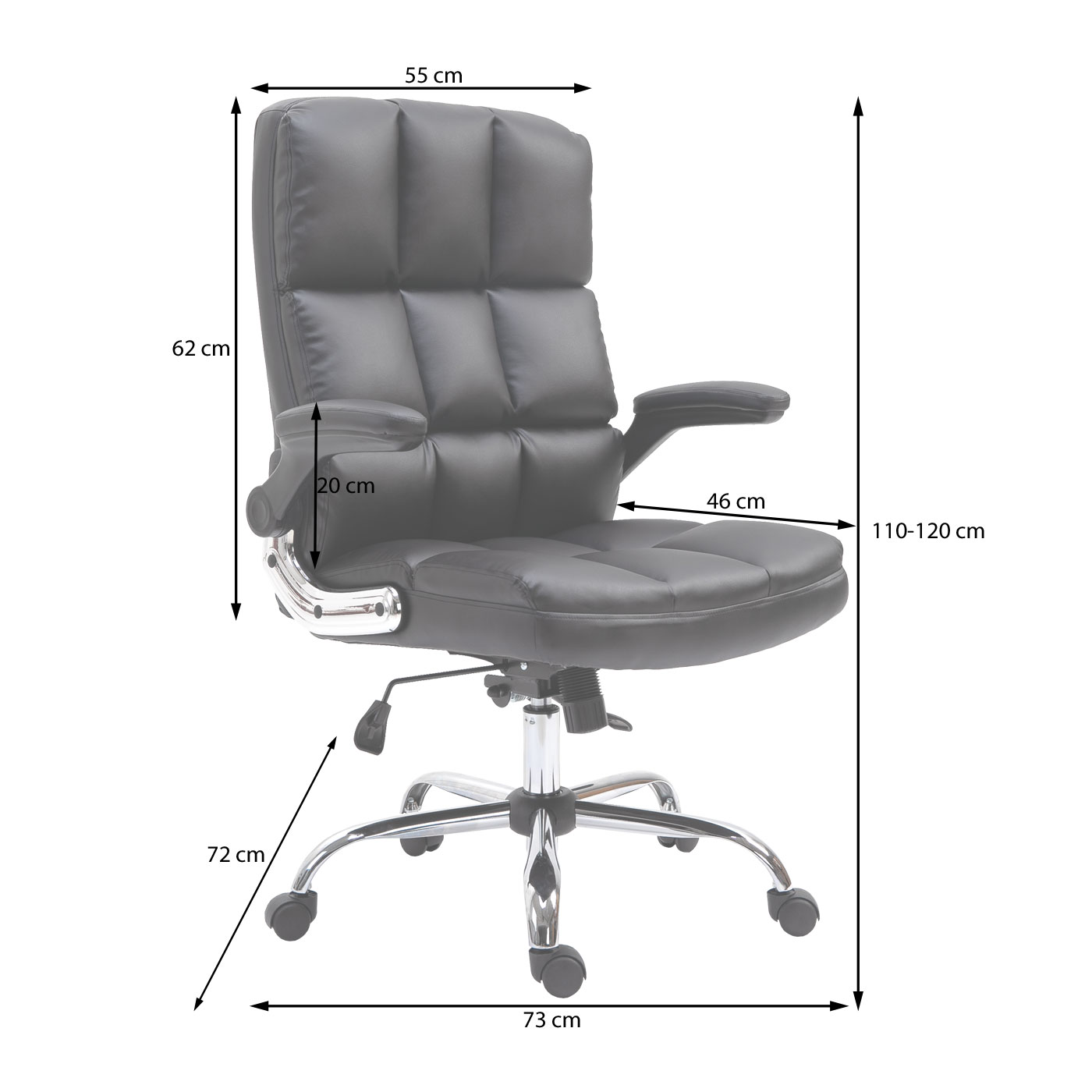 Der Chefsessel begeistert durch sein stilvolles Design und die Farbgebung des pflegeleichten Kunstleders, das Gemütlichkeit in jeden Raum bringt. Das verchromte Fußkreuz verleiht zusätzliche Eleganz. Er ist besonders gemütlich dank der dicken Polsterung und der ergonomisch geformten Sitzfläche und Rückenlehne, die den Rücken unterstützt.