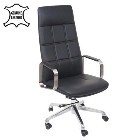 Schreibtischstuhl HWC-A57 Voll-Leder + Kunstleder Edelstahl ISO9001