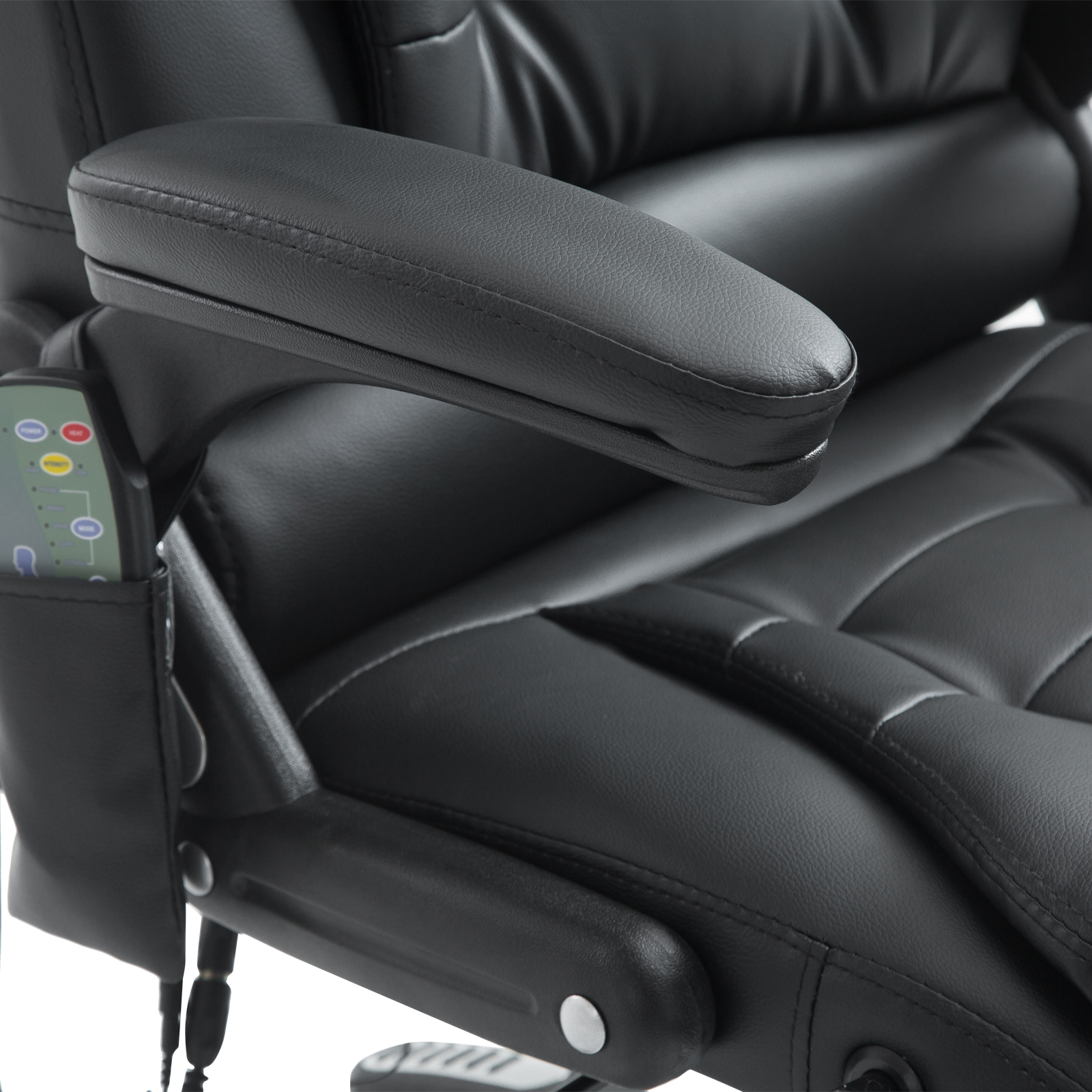 Im Büroalltag, Home-Office oder bei einer längeren Gaming Session: Langes Sitzen ist bei den meisten Menschen Alltag. Das kann schnell mal auf den Rücken gehen. Damit Sie diesen Herausforderungen perfekt gewachsen sind, haben wir unseren praktischen Chefsessel mit Massagefunktion im Angebot. Die wohltuende Vibrationsmassage verwöhnt Ihren Körper während des Arbeitens. Dank der integrierten Wärmefunktion lockern sich Ihre Muskeln noch ein wenig schneller. Der Bürostuhl ist aus hochwertigem schwarzen Kunstleder gefertigt. Das sieht nicht nur schick aus, sondern ist auch besonders pflegeleicht. Davon abgesehen ist unser Chefsessel ergonomisch geformt und höhenverstellbar. Auch ohne Massage und Wärmefunktion bewältigen Sie so Ihren Alltag mühelos.