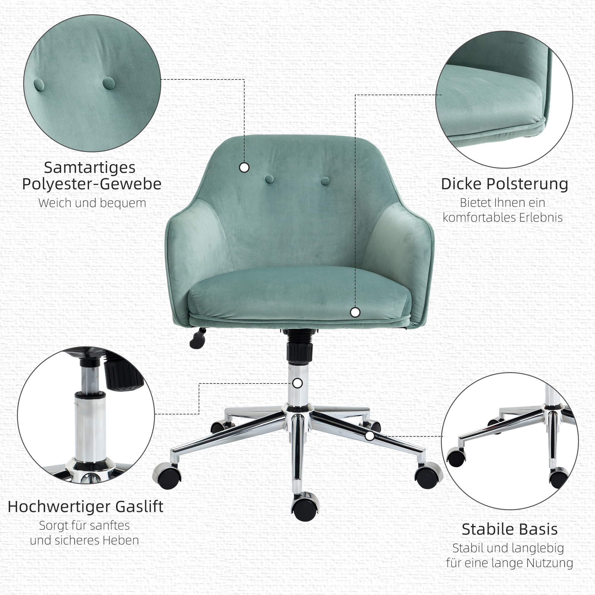 Gestalten Sie Ihre Arbeitszeit mit diesem Drehstuhl von Vinsetto so entspannt wie noch nie. Dieser stilvolle Bürostuhl bietet alles, was Sie für einen Bürostuhl benötigen, einschließlich einer Schaukelfunktion, einer 360°-Drehung und einer verstellbaren Sitzfläche. Ein wannenförmiger Stuhl mit hohen Seiten- und Rückenlehnen stützt Ihren Körper ideal. Eine dicke Polsterung und weiches Polyestergewebe mit Samt-Touch für sorgt für optimalen Komfort.