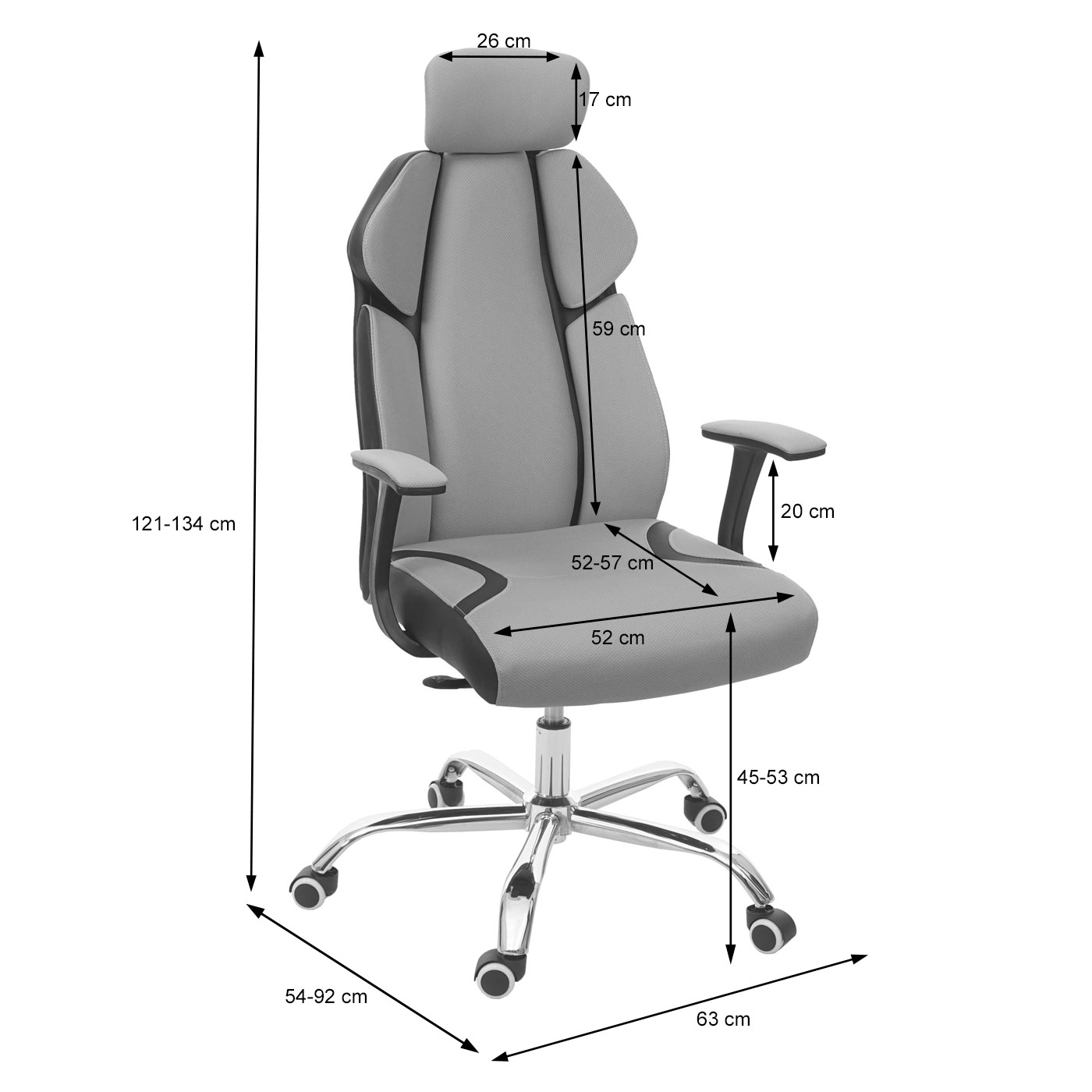 Sitztiefe: 52 – 57 cm