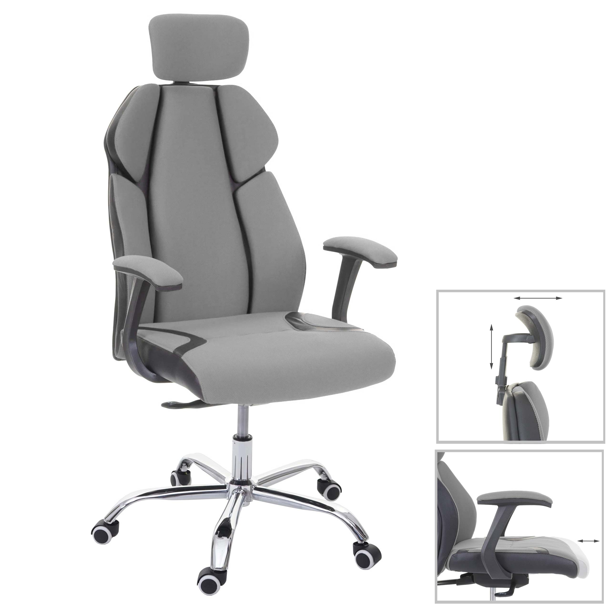 Bürostuhl Sliding-Funktion mit Nackenstütze Stoff grau