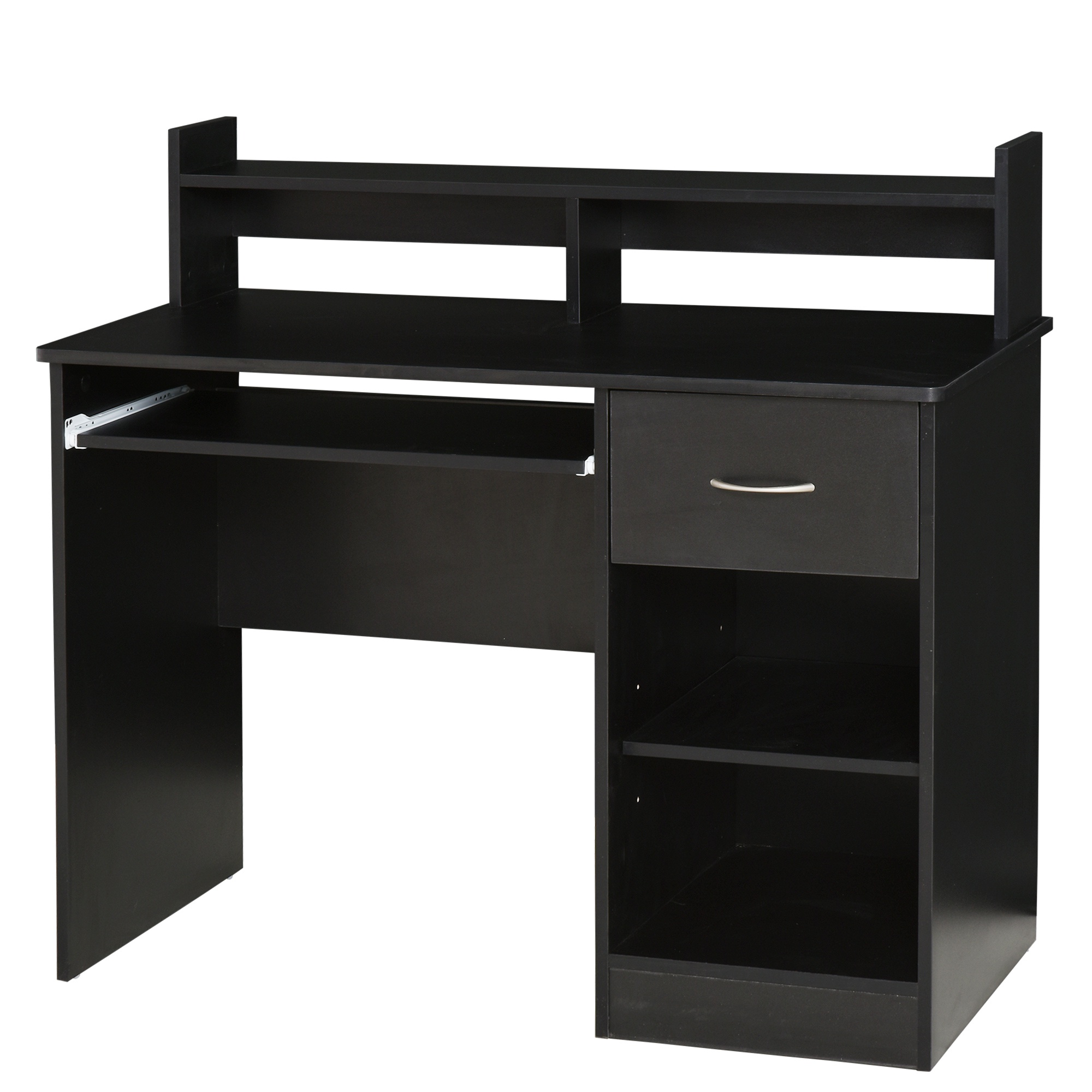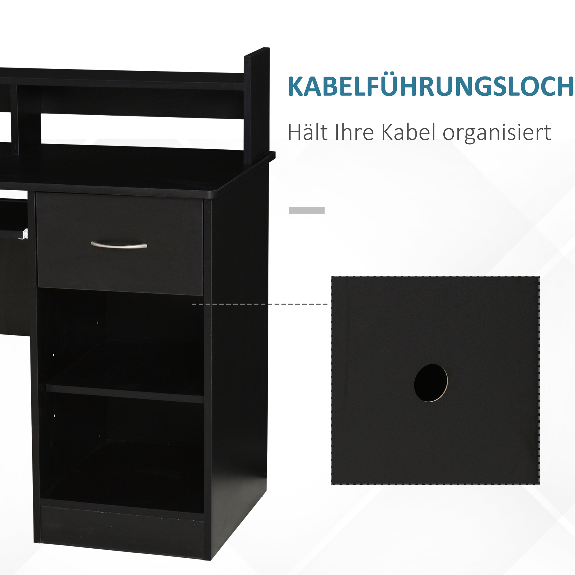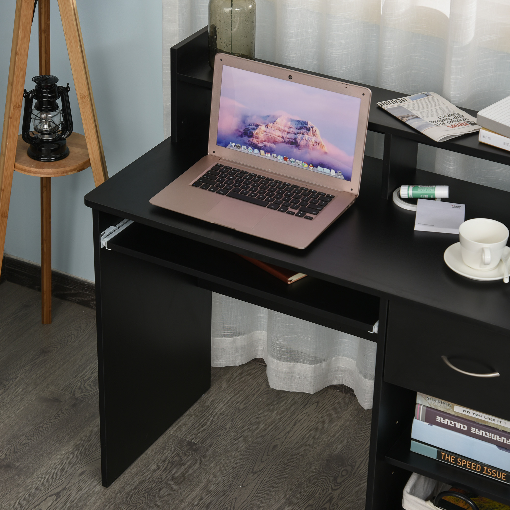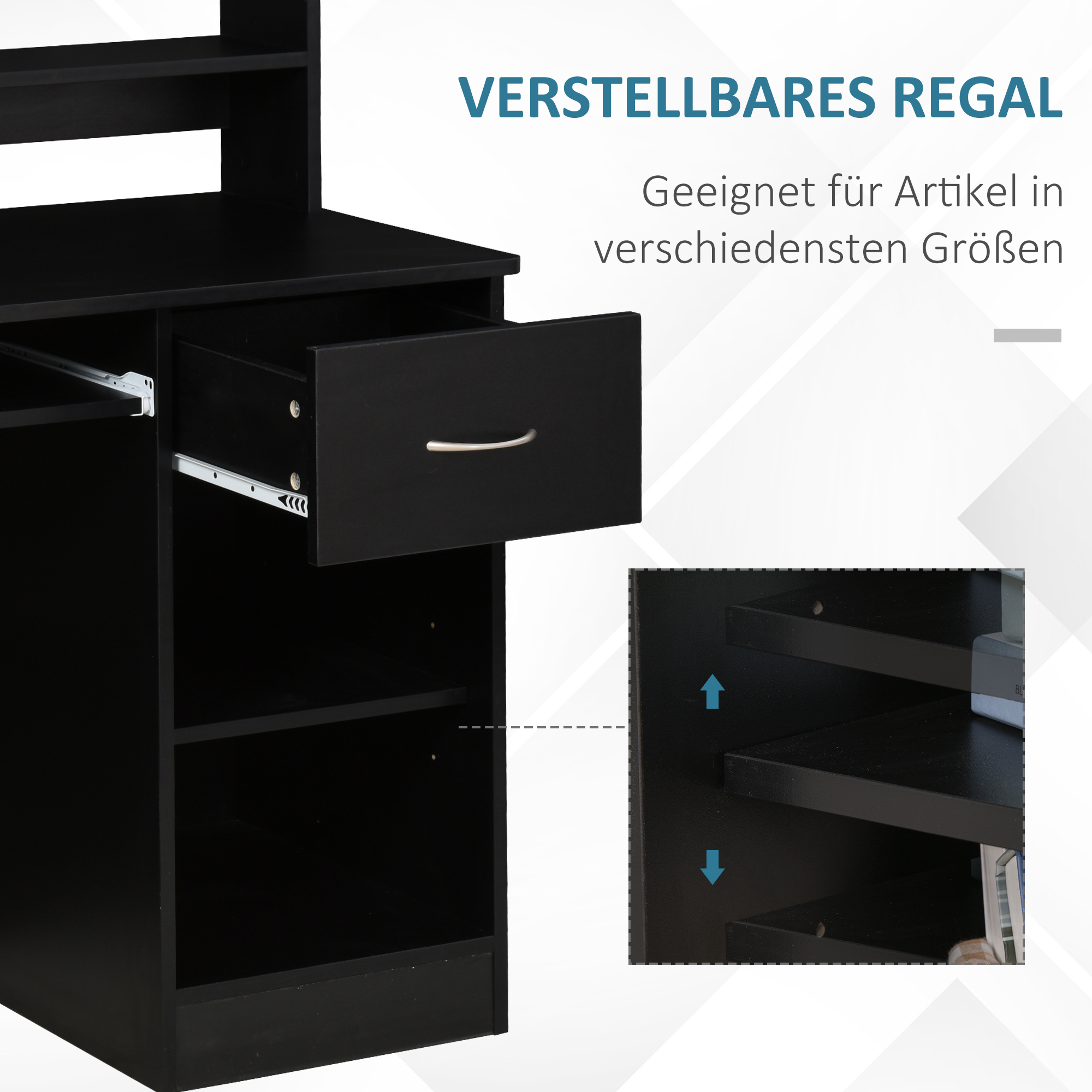 Dieser stylische Computertisch von HOMCOM kombiniert modernes Design mit viel Ablagefläche. Eine ausziehbare Tastaturablage, eine Schublade für Zubehör und eine verstellbares Regal bieten viel Platz für Zubehör. Dieser kompakte Schreibtisch von HOMCOM bietet jede Menge Platz zum Arbeiten auf kleinstem Raum.