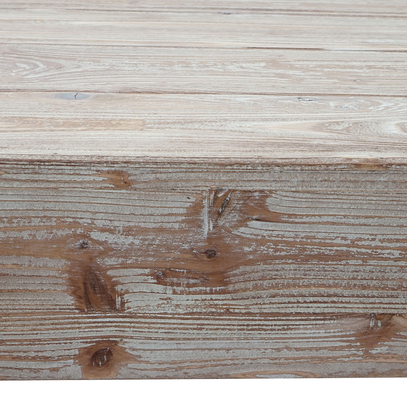 Der sichtbare Teil des Couchtisches besteht aus echtem Tannenholz, während die Unterseite aus Kostengründen hohl konzipiert wurde. Dies spart Gewicht und Kosten, was Ihnen ein ausgezeichnetes Preis-Leistungs-Verhältnis bietet. Die Verstärkungen der Tischunterseite sind aus MDF, während die Füße aus robustem Metall gefertigt sind.