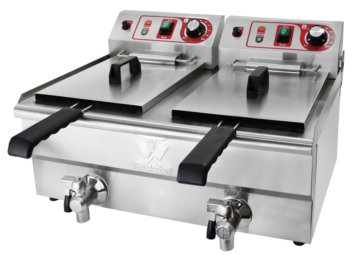 Doppel Fritteuse Profi ~ 2x 10 Liter mit Ablaufhahn