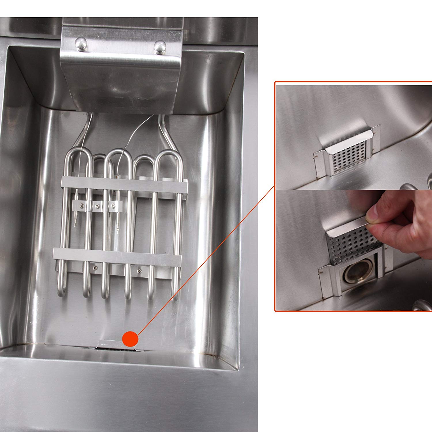 Funkionsweise: Bei Profi Fritteusen nach dem Kaltzonen Prinzip befindet sich das Heizelement nicht unter der Wanne sondern direkt im Öl. Frittierreste verbrennen nicht am Boden und dadurch bleibt das Öl länger frisch und behält seinen Geschmack.