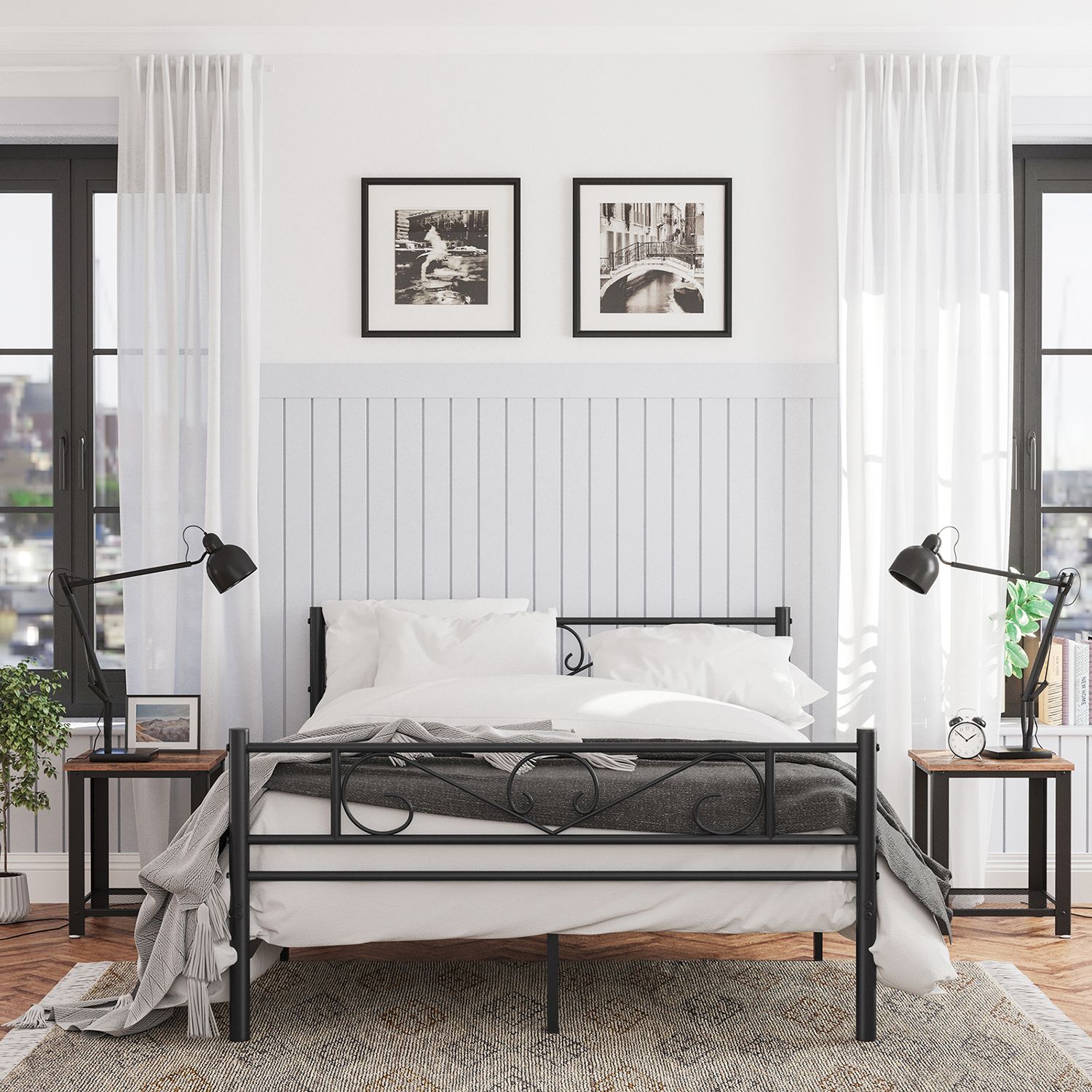 Stilvolles Doppelbett mit Metallrahmen