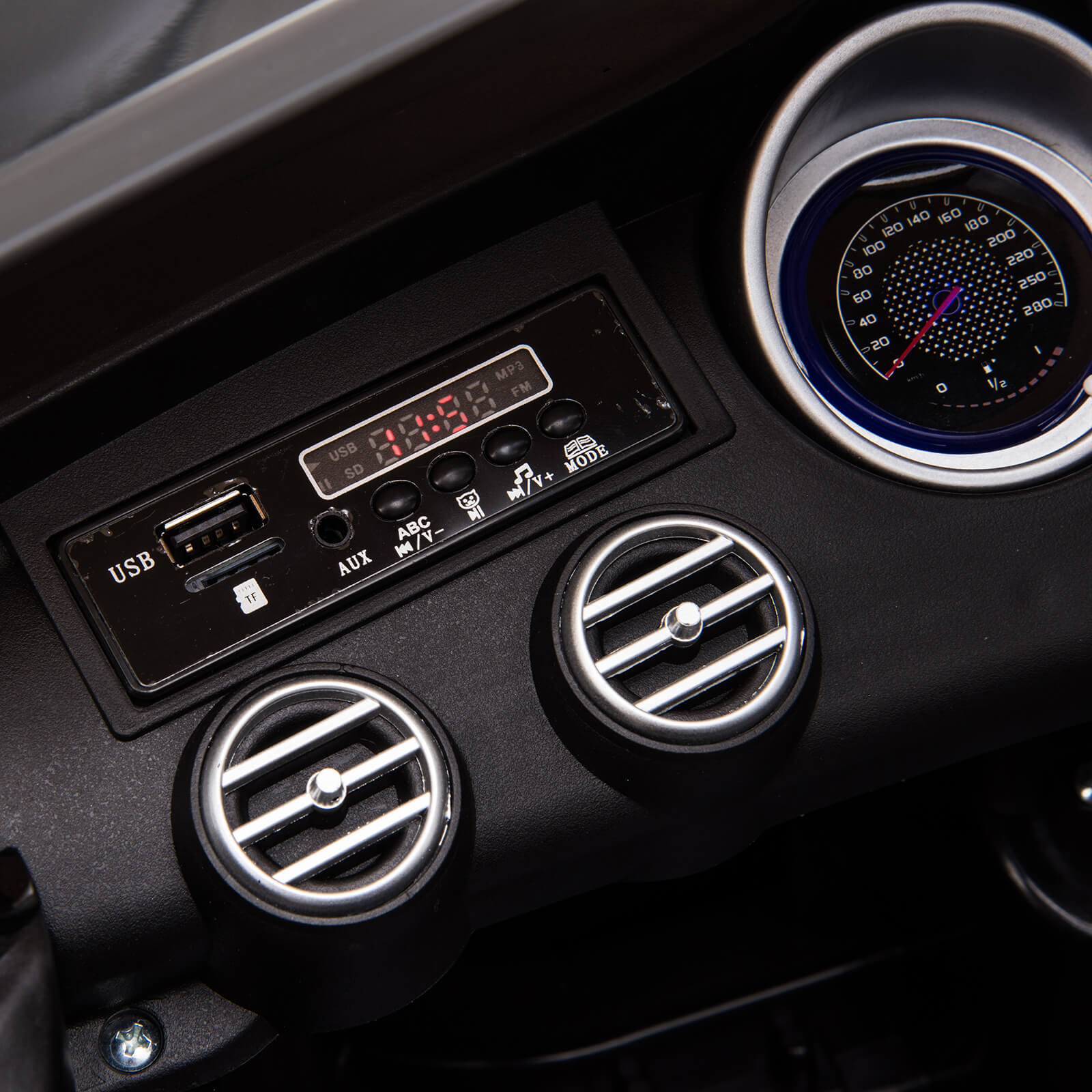 Dieses großartige Kinderauto verfügt über viele Ausstattungsmerkmale eines echten Autos, wie Scheinwerfer und Rücklichter, ein Armaturenbrett mit Tachometer und Musik-Player (mit programmierten Tracks), USB- und TF-Kartensteckplätze, sowie Sicherheitsgurte. Die Geschwindigkeitsbegrenzung für das Elektroauto beträgt drei Kilometer pro Stunde. Eltern können das Auto jederzeit von außen mithilfe der mitgelieferten Fernbedienung steuern.