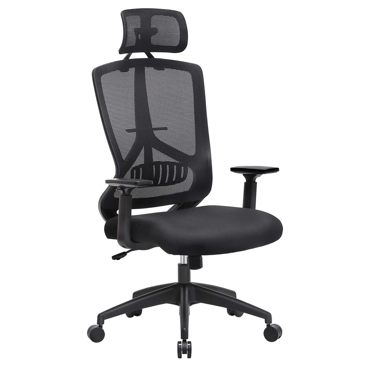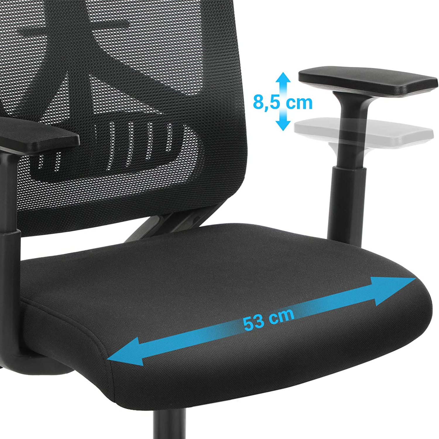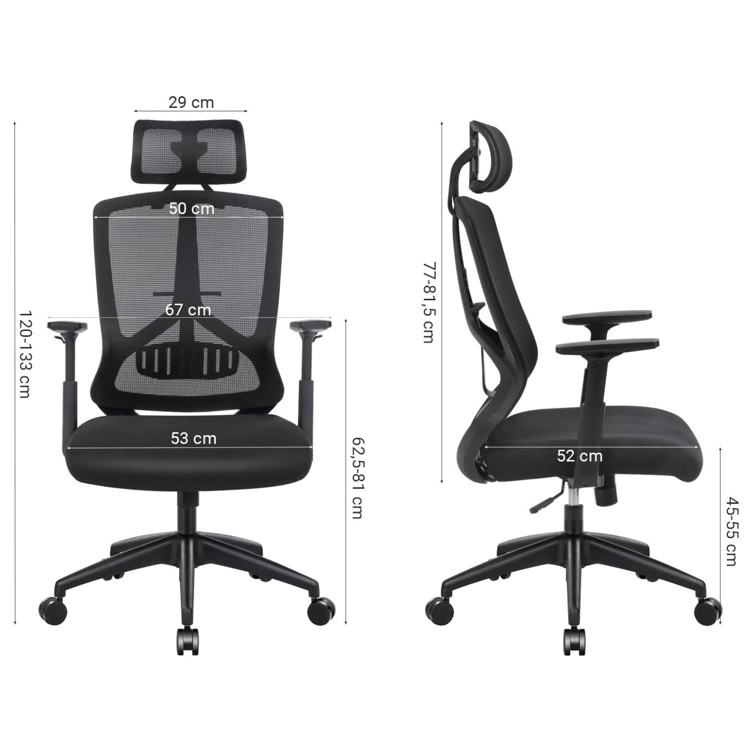 Höhenverstellbare Kopfstütze, Lordosenstütze & Armlehnen.