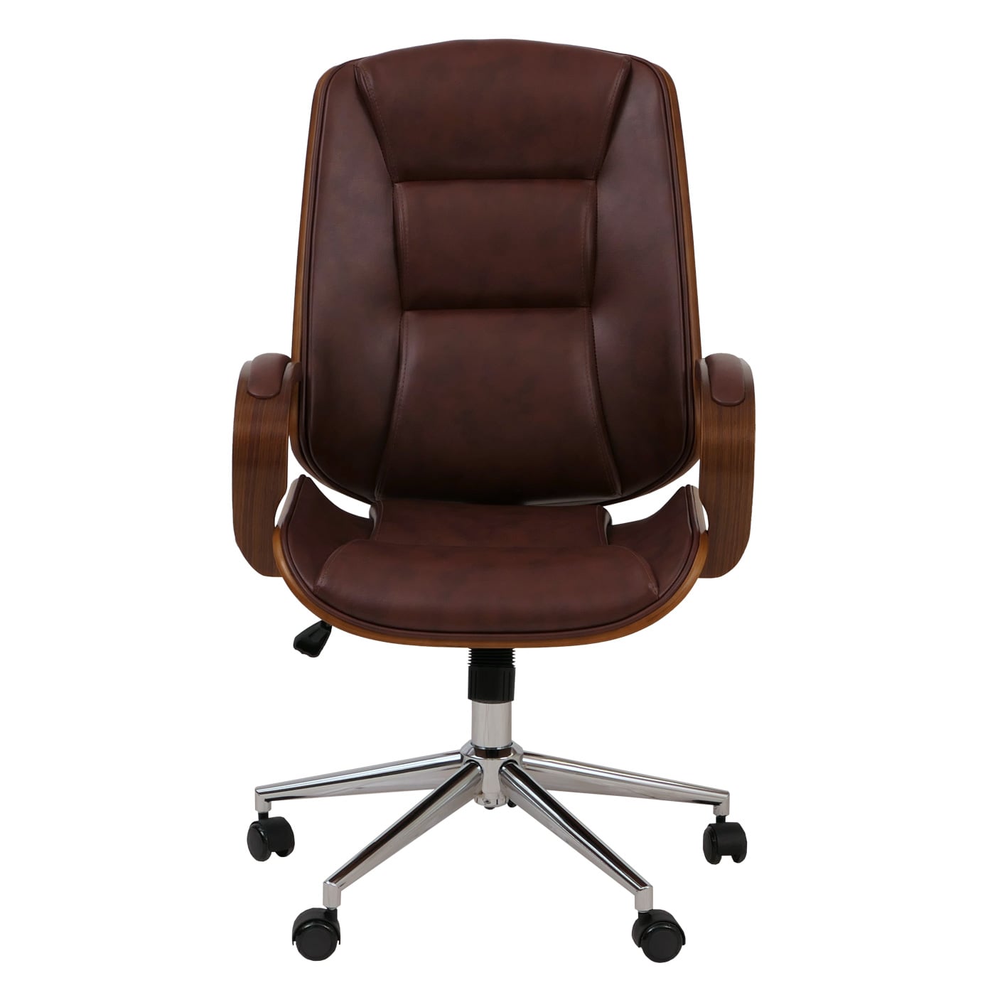 Verleihen Sie Ihrem Arbeitszimmer oder Homeoffice mit diesem stilvollen Bürostuhl ein exklusives Ambiente. Die hochwertige Materialkombination aus Bugholz und pflegeleichtem Kunstleder sorgt nicht nur für eine edle Optik. sondern bietet auch optimalen Sitzkomfort – ideal für lange Arbeitstage.