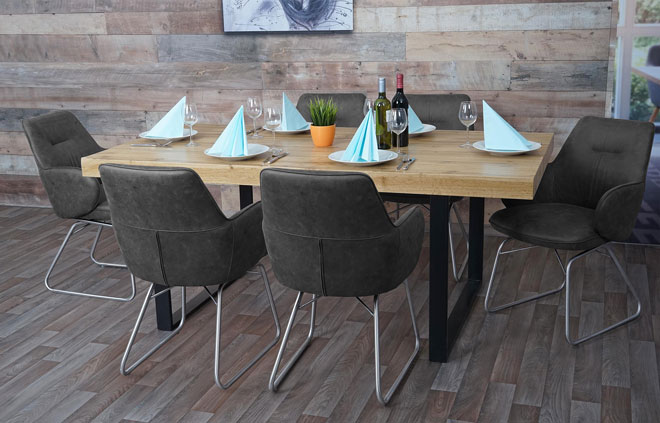 Dieser Esszimmerstuhl ist eine bequeme, solide und zugleich stilvolle Sitzgelegenheit für den täglichen Gebrauch. Dank des interessanten Designs mit den rundlichen Armlehnen werden diese Stühle viele Blicke auf sich ziehen und sind somit die perfekte Ergänzung für Ihren Wohnbereich. Durch die Schwingfunktion erweist sich dieser Stuhl als überaus bequem.