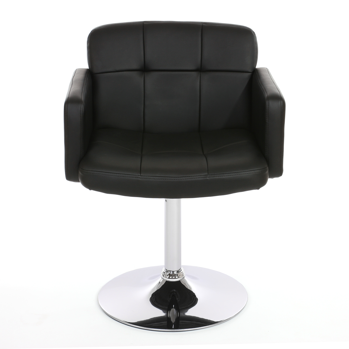 Nicht nur das formschöne und schlichte Design weiß bei diesem Esszimmerstuhl zu überzeugen, sondern auch der überraschend hohe Sitzkomfort mit einer Polsterstärke von 8 cm lässt ein längeres Verweilen zu, was man von einem bequemen Esszimmerstuhl erwarten darf. Zudem besitzt der Stuhl Armlehnen und wird nach dem Essen zum Lounger. Der verchromte zylinderförmige Fuß bietet einen sicheren Stand und runden das hochwertige Design perfekt ab. Um 360° drehbar, erfüllt dieser Esszimmerstuhl sämtliche Anforderungen und wird Ihnen lange Freude bereiten.