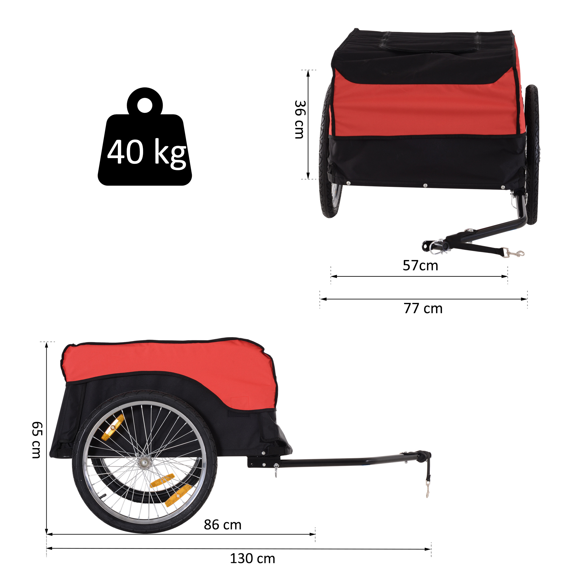 Mit dem Fahrrad lässt sich sehr wohl viel transportieren. Mit dem Lastenanhänger sogar sehr einfach. Die Universal-Anhängerkupplung passt an fast jedes Fahrrad und ist schnell an- und wieder abmontiert. Der robuste Stahlrahmen lässt eine Beladung von bis zu 40 kg zu. Mit den 20-Zoll-Reifen ist sich der Anhänger auch vollbeladen noch leicht zu ziehen und die Felgenreflektoren sorgen für eine bessere Sichtbarkeit.