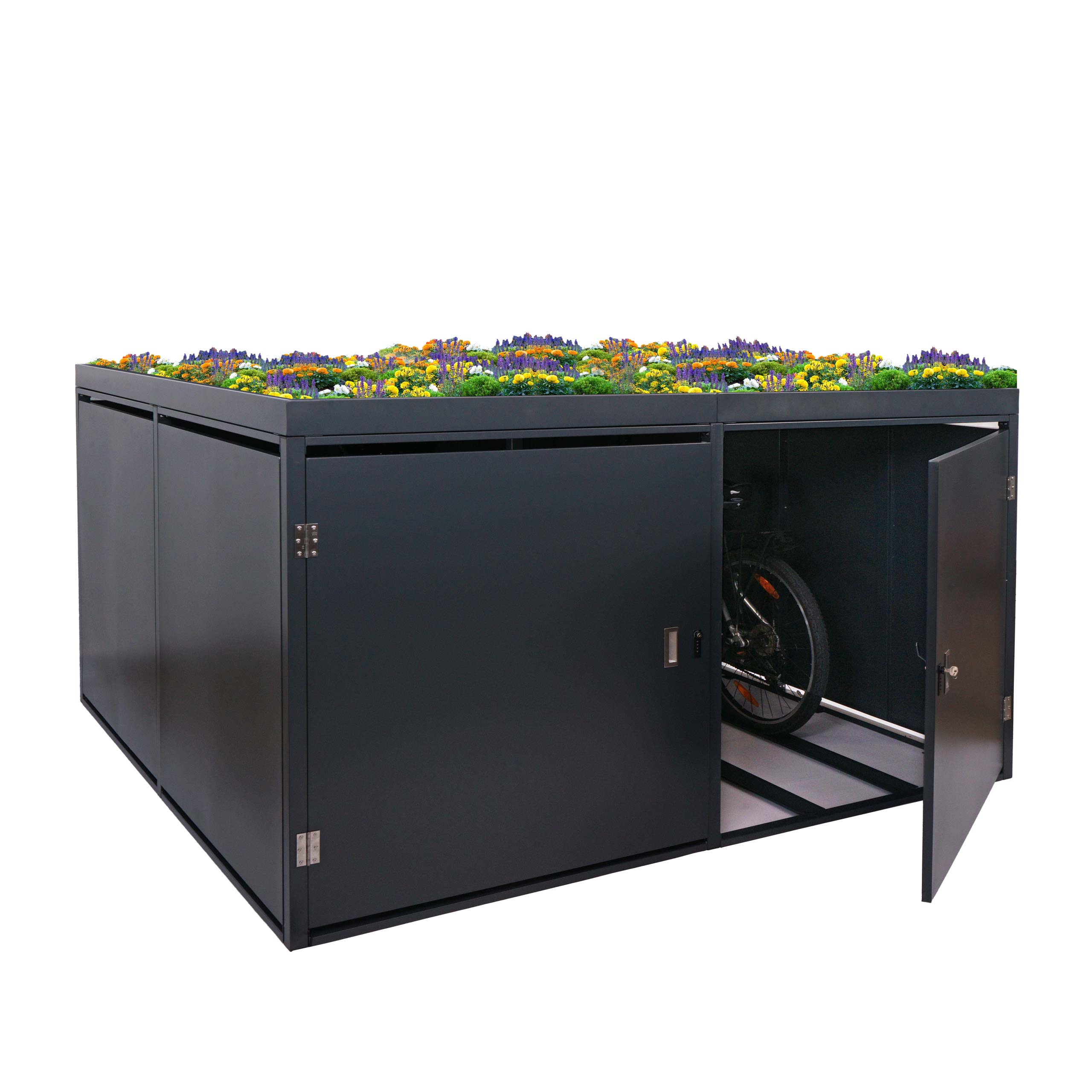 Fahrradgarage für 4 Fahrräder mit Pflanzkasten – Die platzsparende und sichere Lösung für Ihren Außenbereich