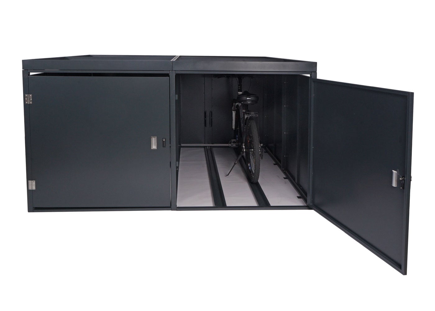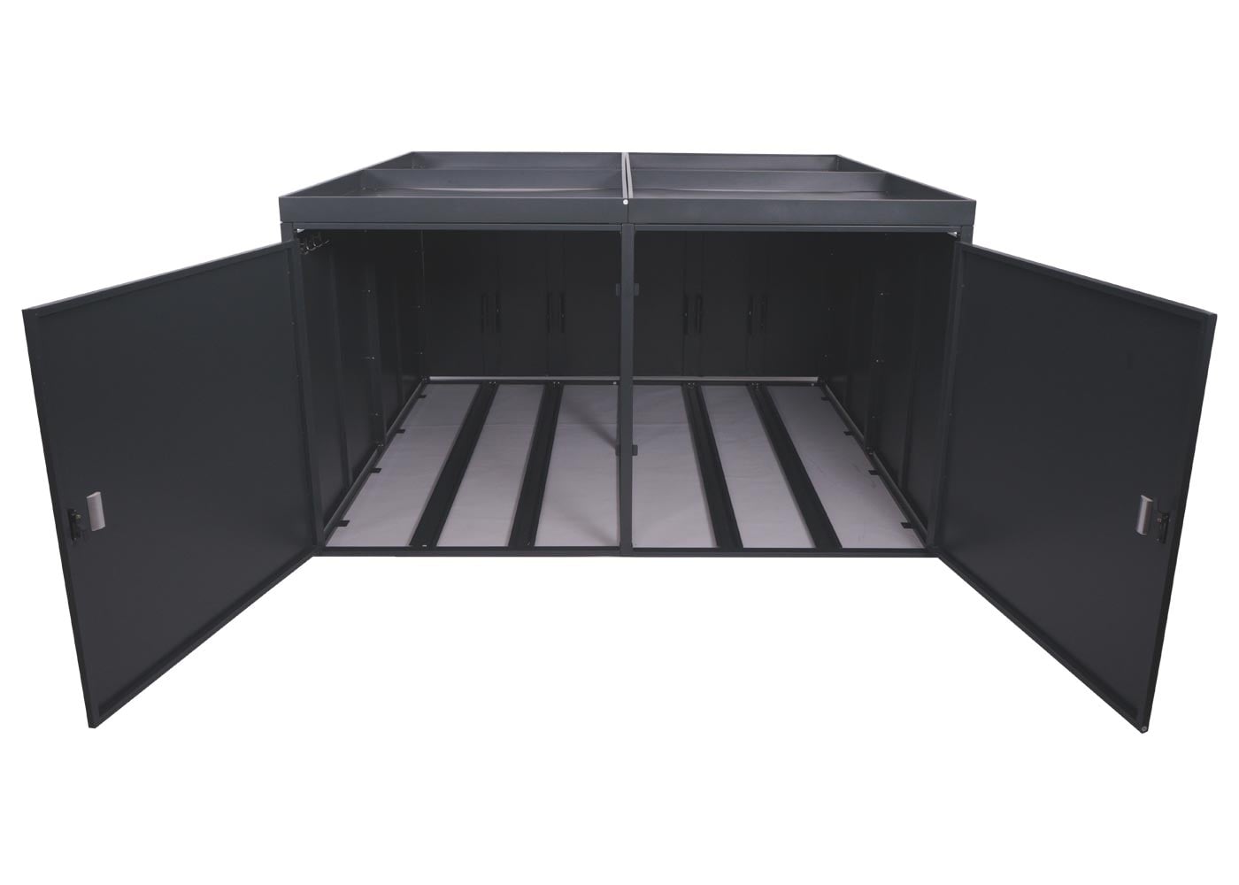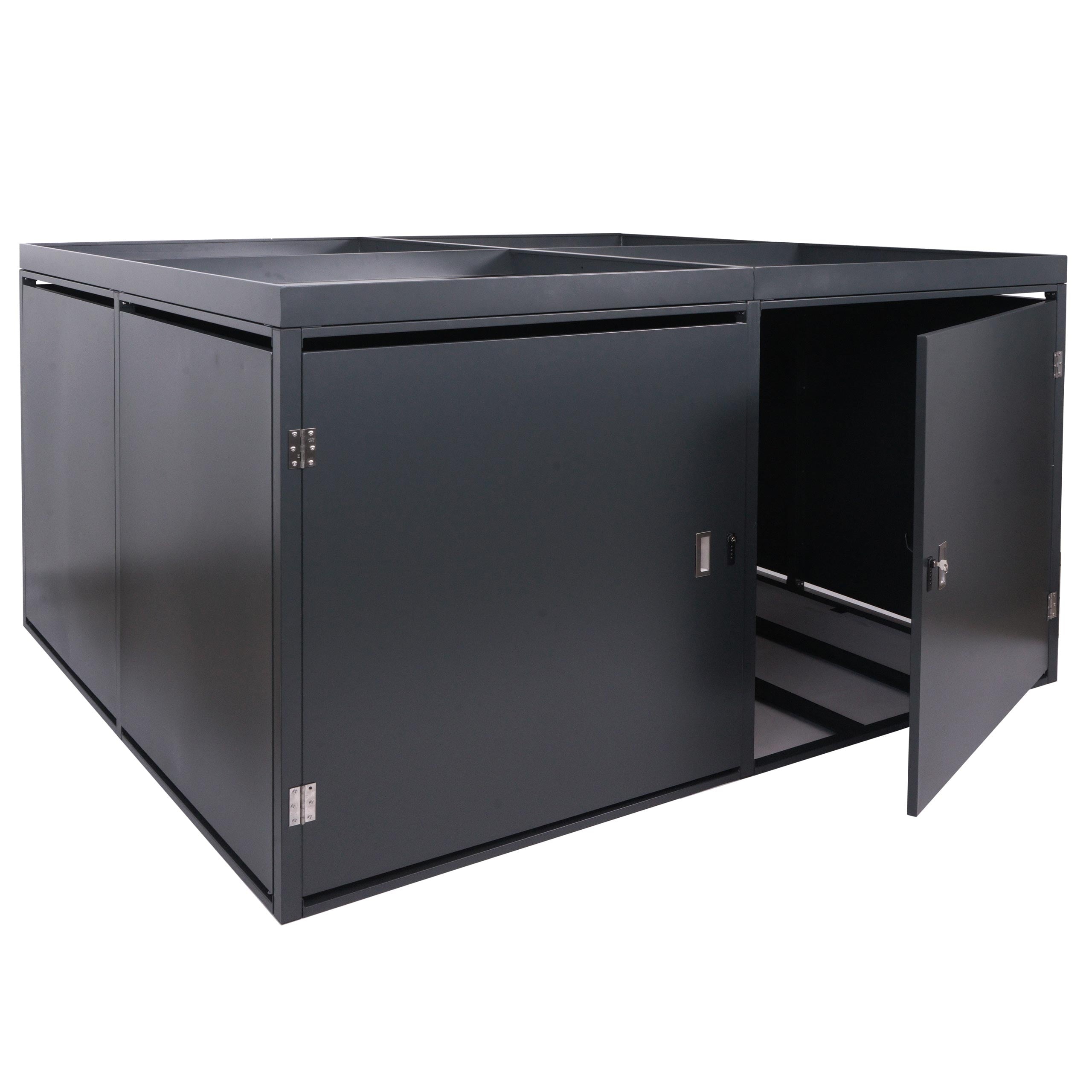 Mit dieser Fahrradgarage erhalten Sie eine clevere Kombination aus sicherem Stauraum und attraktivem Pflanzkasten – für mehr Ordnung. Schutz und Stil in Ihrem Außenbereich.