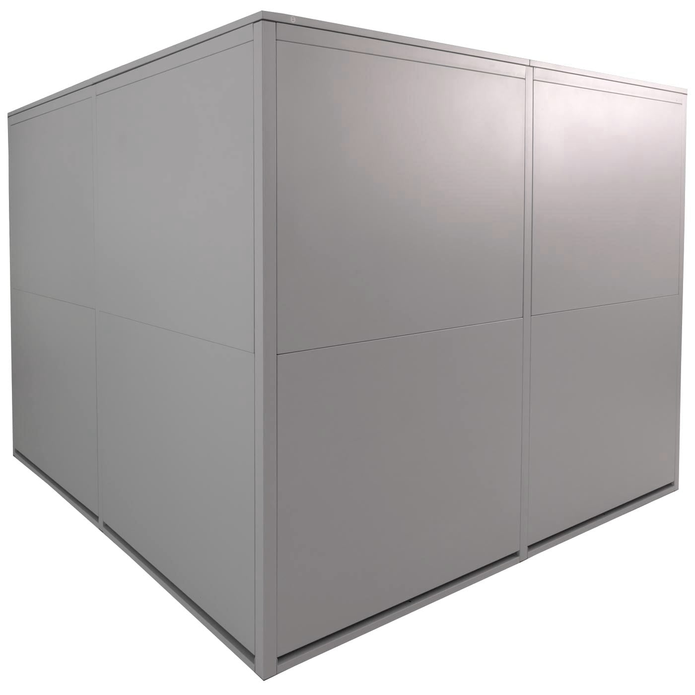 Schützen Sie Ihre Fahrräder zuverlässig vor Witterung und Diebstahl – mit dieser robusten Fahrradgarage für bis zu vier Fahrräder. Die stabile Konstruktion bietet viel Platz. durchdachte Details und flexible Montagemöglichkeiten für Zement-. WPC- oder Holzböden.