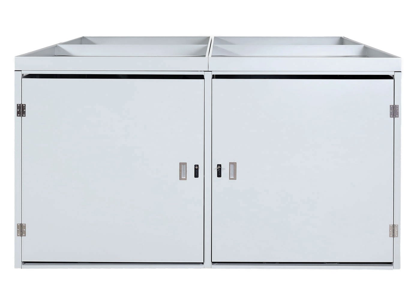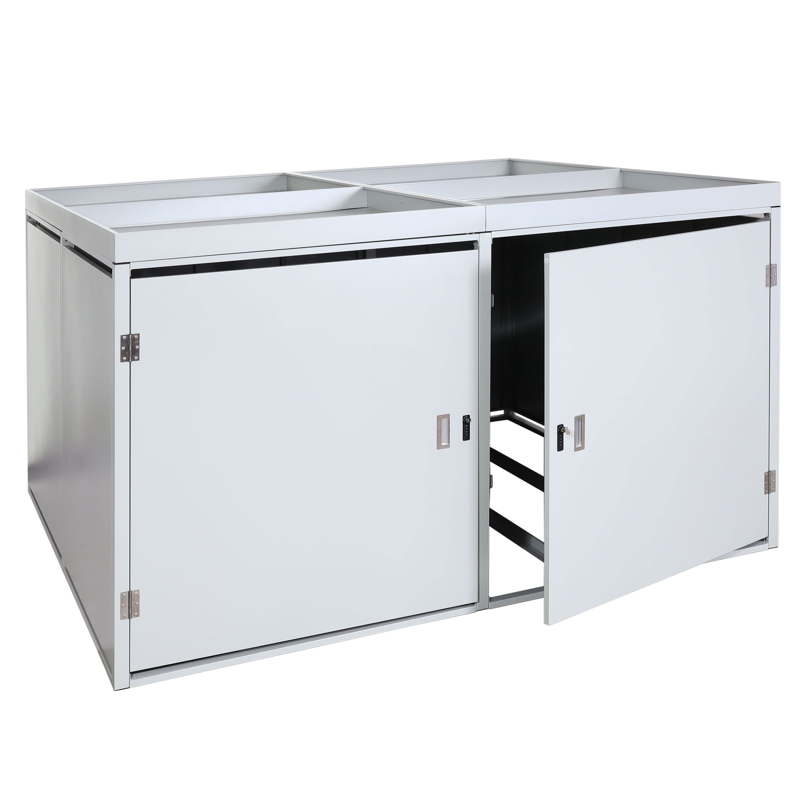 Fahrradgarage für 4 Räder mit Pflanzkasten, abschliessbar, Stahl, hellgrau