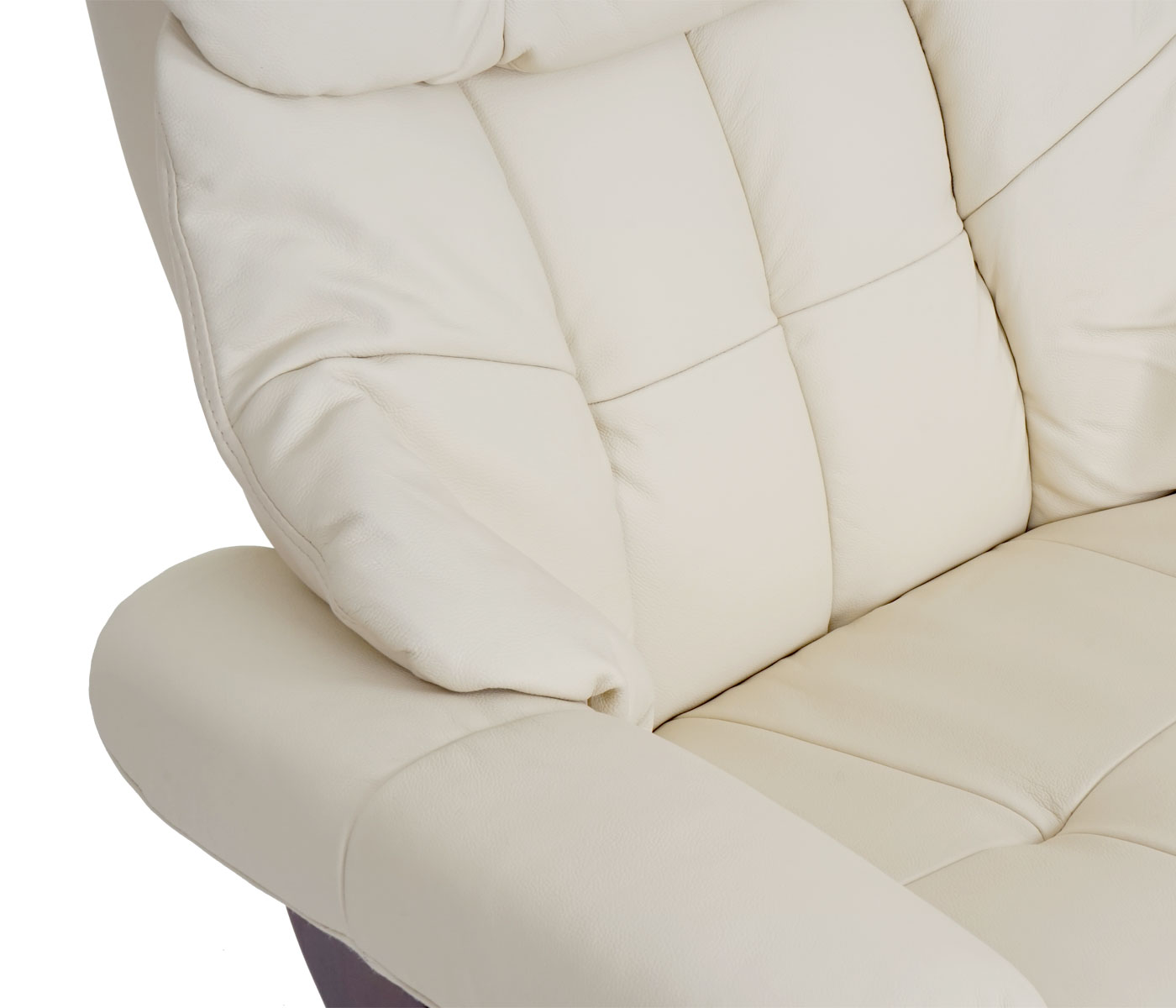 – Kontaktflächen (Rücken, Sitz und Armlehnen) aus echtem Rindsleder (Vollleder)