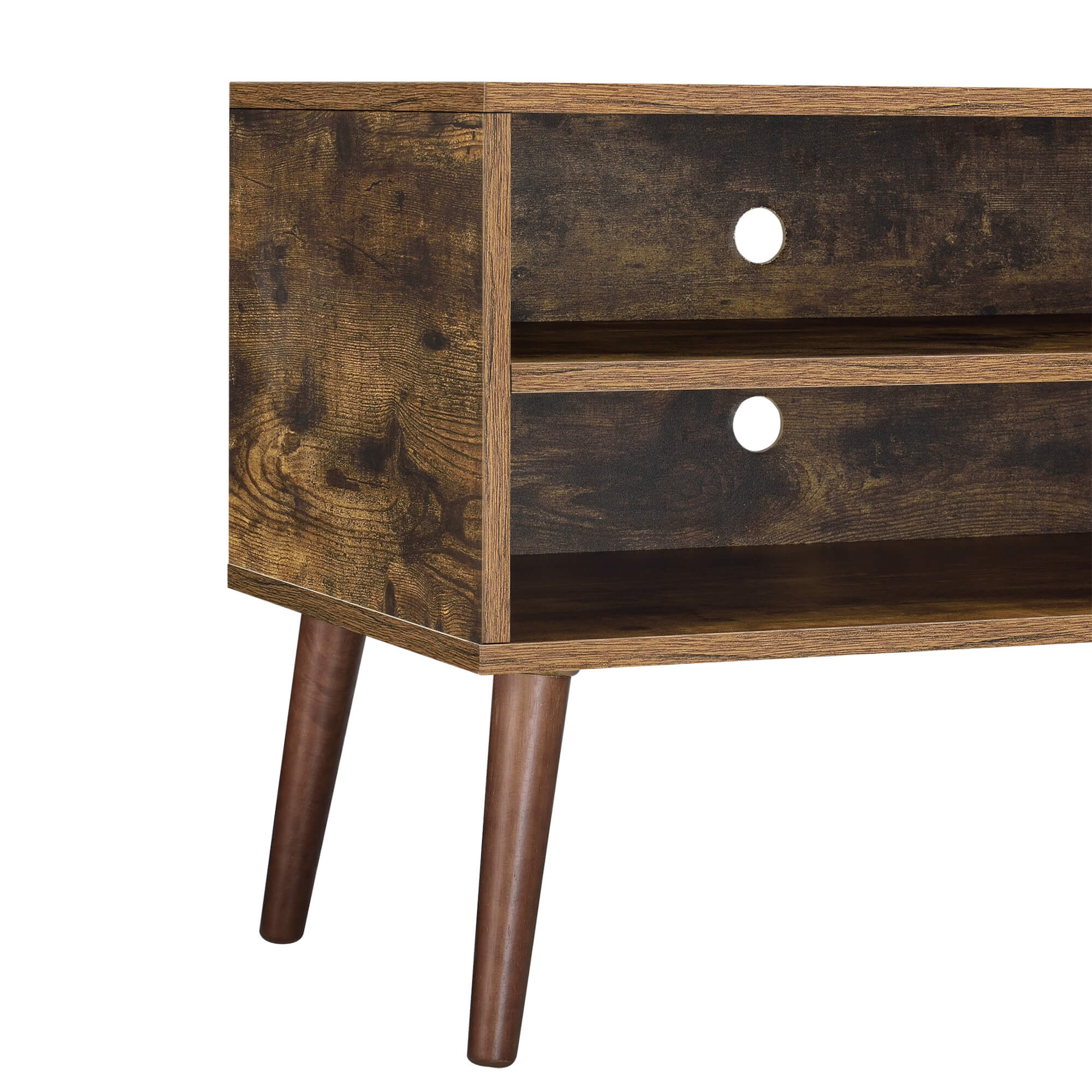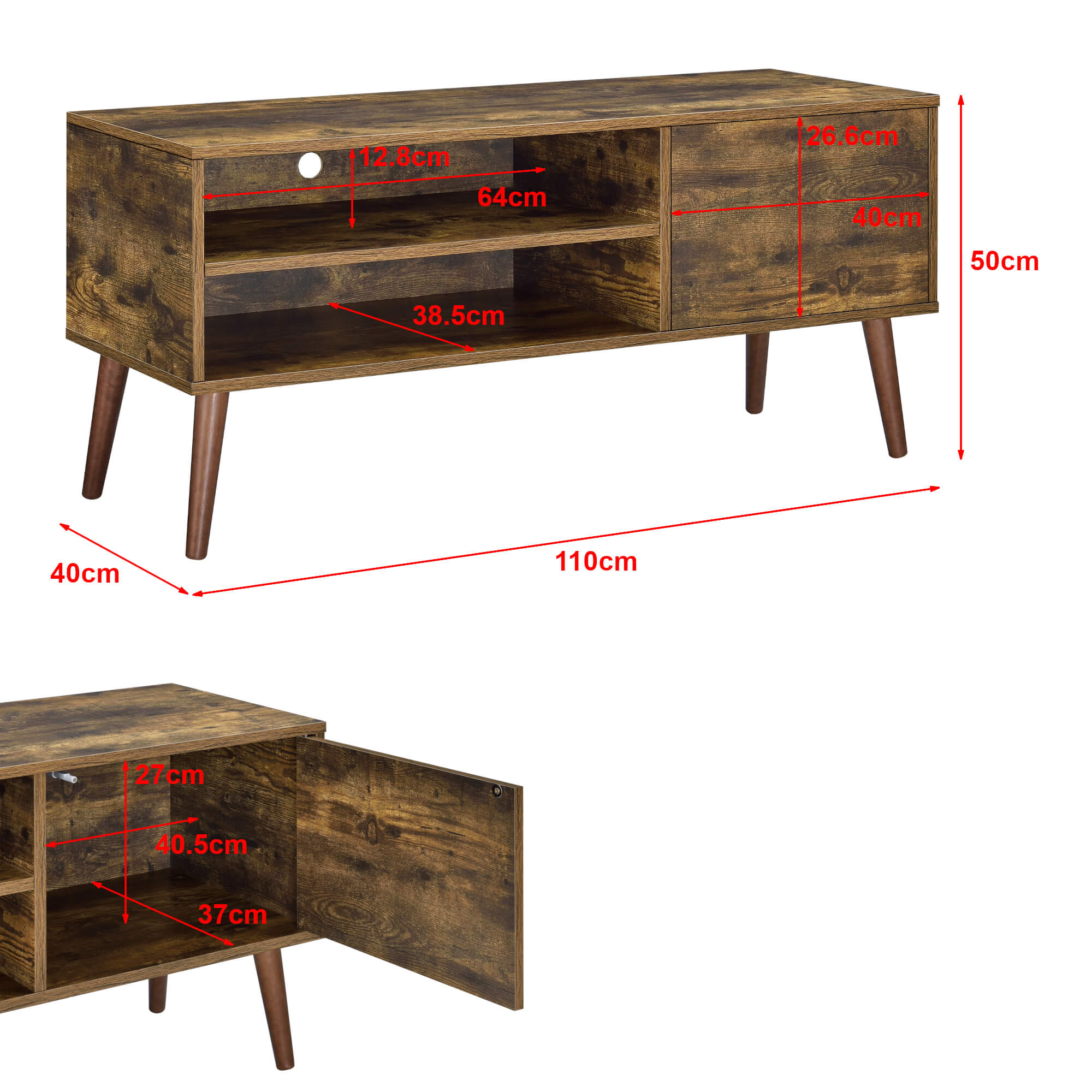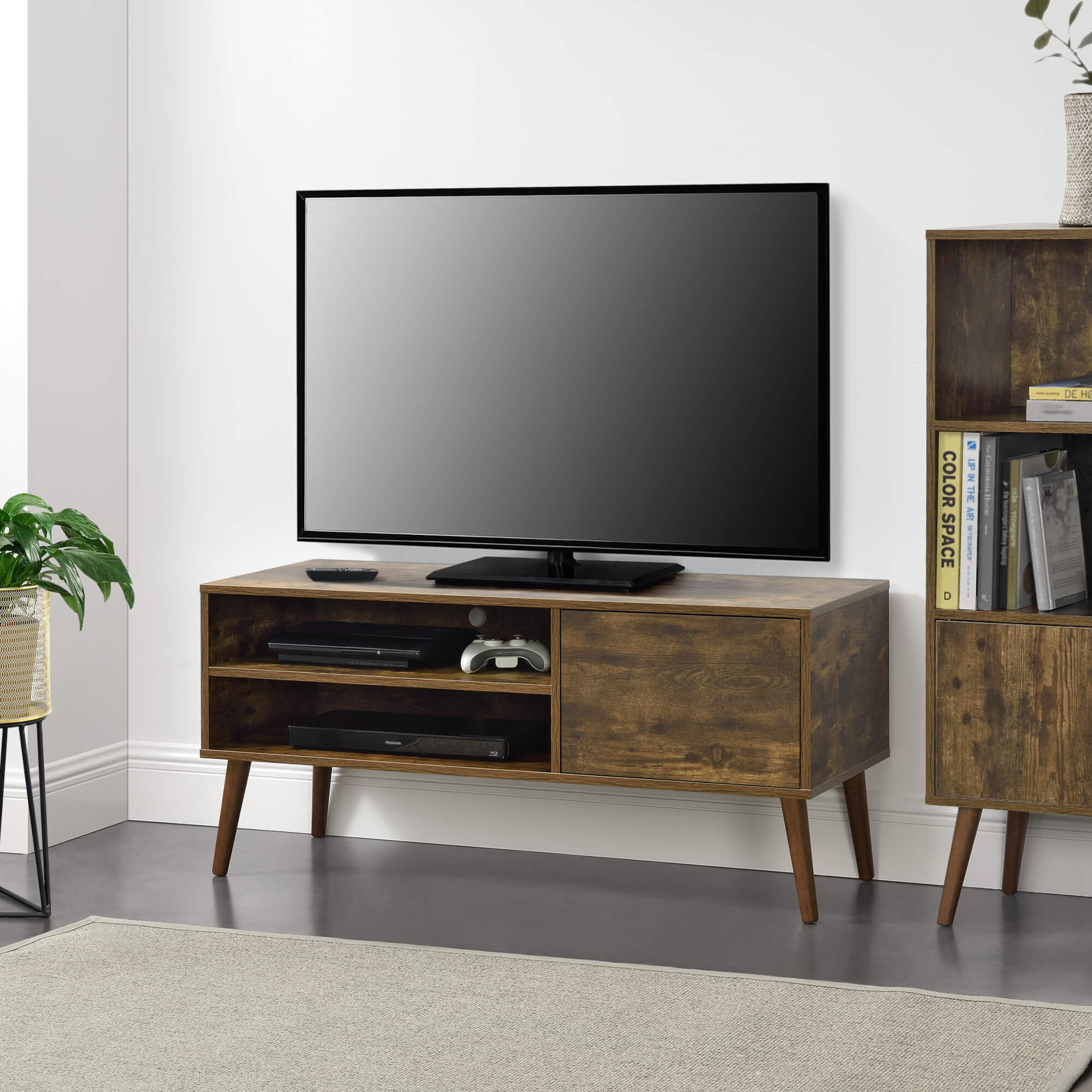 Dieser moderne und dekorative Fernsehtisch verfügt über eine Schranktür und bietet durch die zwei Ablagen einen zusätzlichen Stauraum.