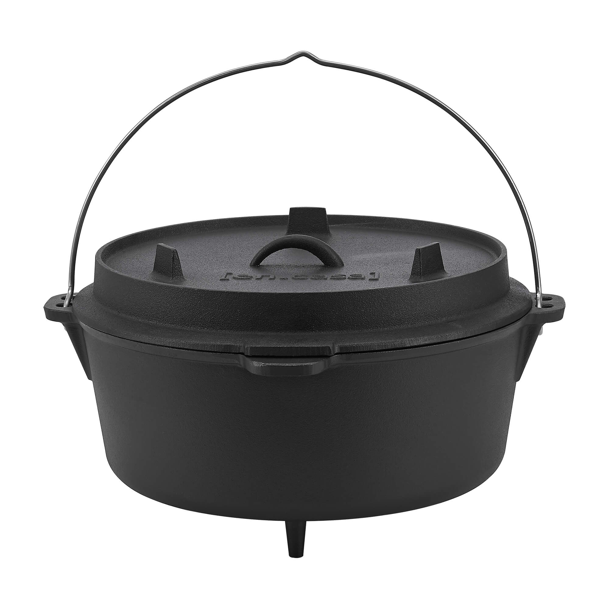 Der Kochtopf aus Gusseisen ist ein Multifunktionstalent und lässt sich bspw. als Schmortopf, Gulaschkessel oder Brotbacktopf verwenden. Glut, glühende Kohlen oder Grillbriketts können direkt auf dem Deckel oder unter dem Topf platziert werden. Der Dutch Oven ermöglicht ein gleichmäßiges Garen und verfügt darüber hinaus über einen Deckelheber.