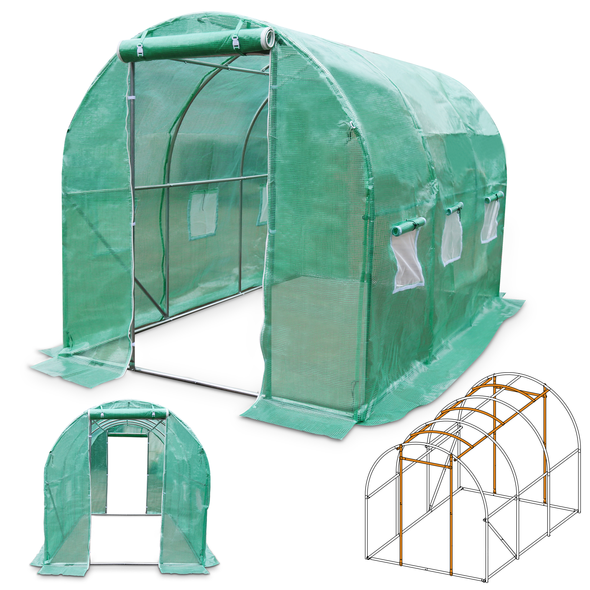 Dieses hochwertige Gewächshaus bietet alles, was Sie für eine erfolgreiche Pflanzenzucht im Garten benötigen – von Stabilität über Wetterfestigkeit bis hin zu idealen Wachstumsbedingungen. Perfekt für eine reiche Ernte aus eigenem Anbau.