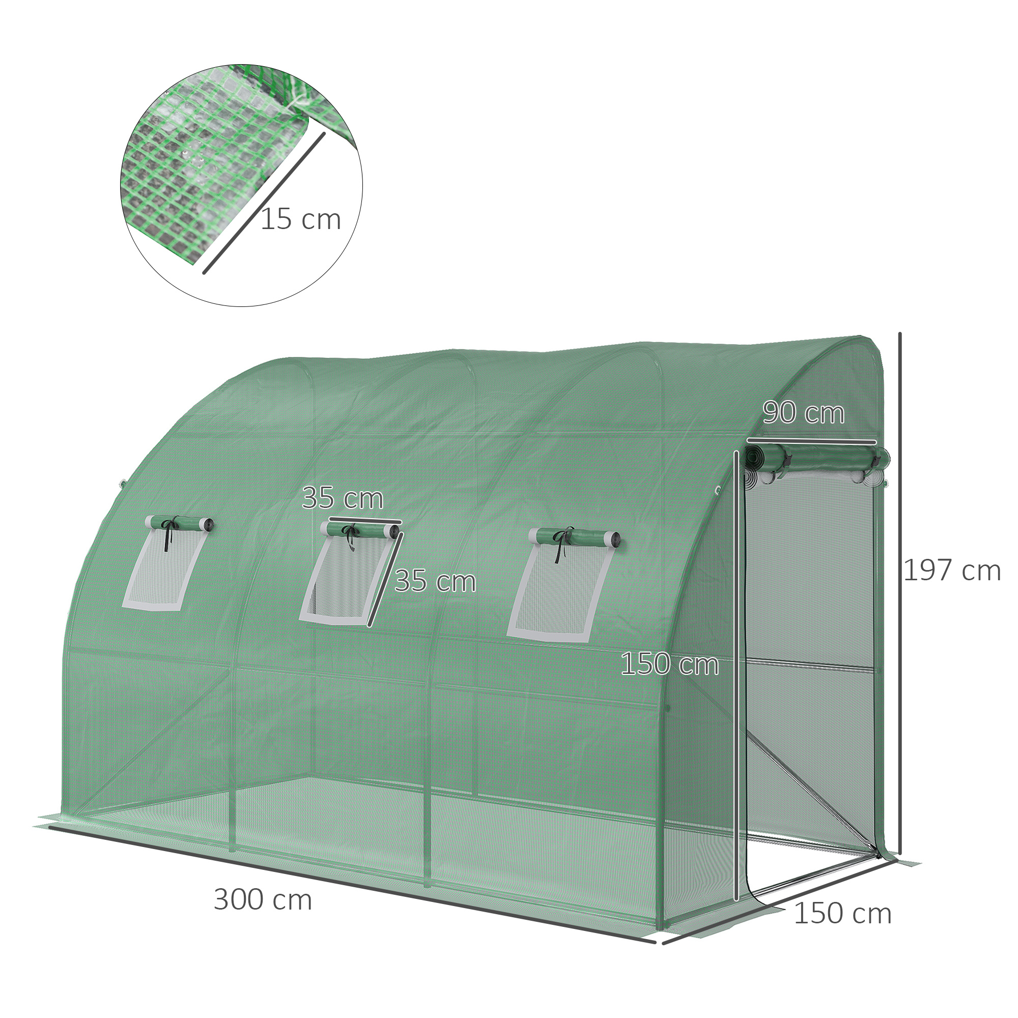 - Verwenden Sie die aufrollbaren Fenster für einen Blick hinein und, um die Feuchtigkeit im Inneren zu regulieren