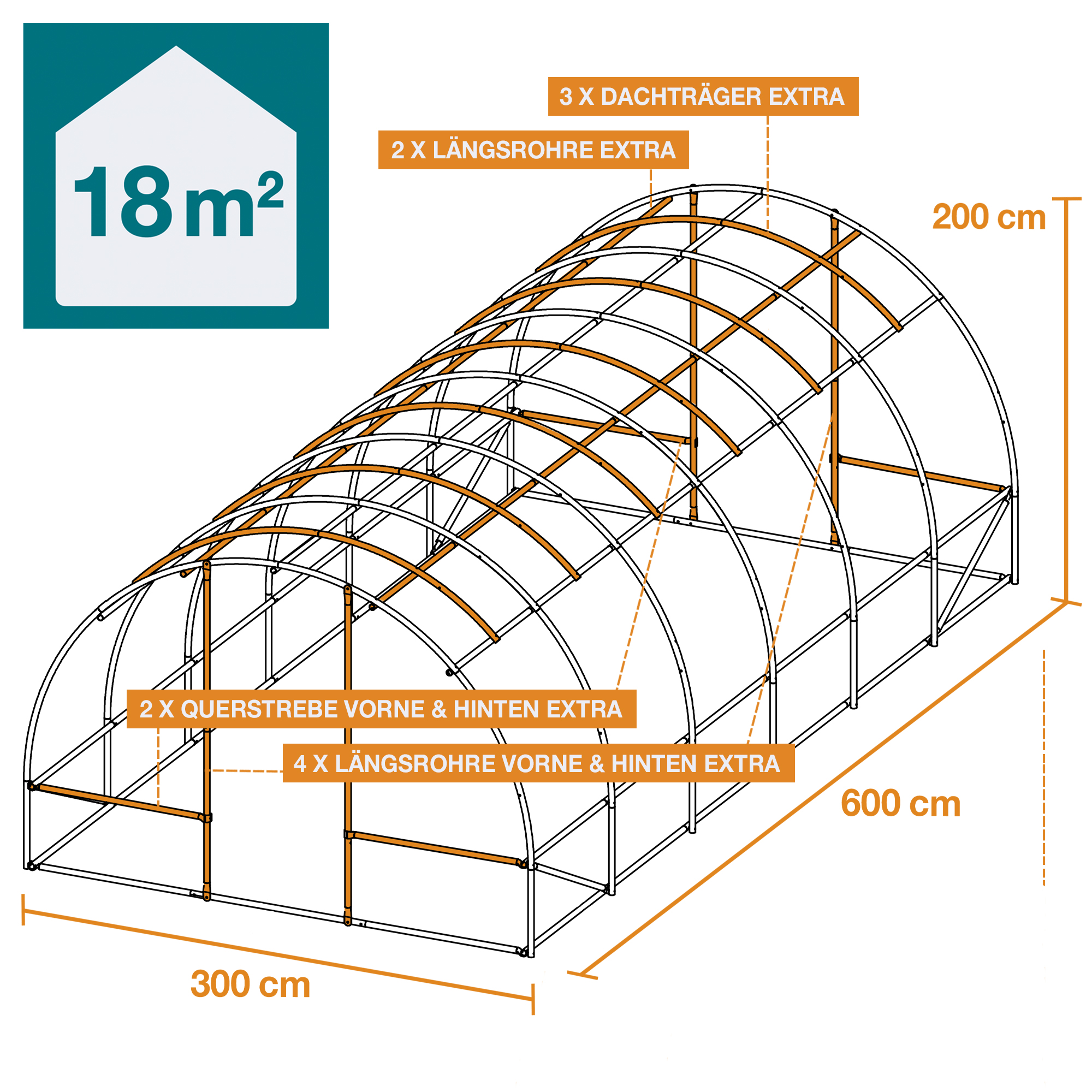 - XXL – 18 m² – 300 x 200 x 600 cm (B x H x T)