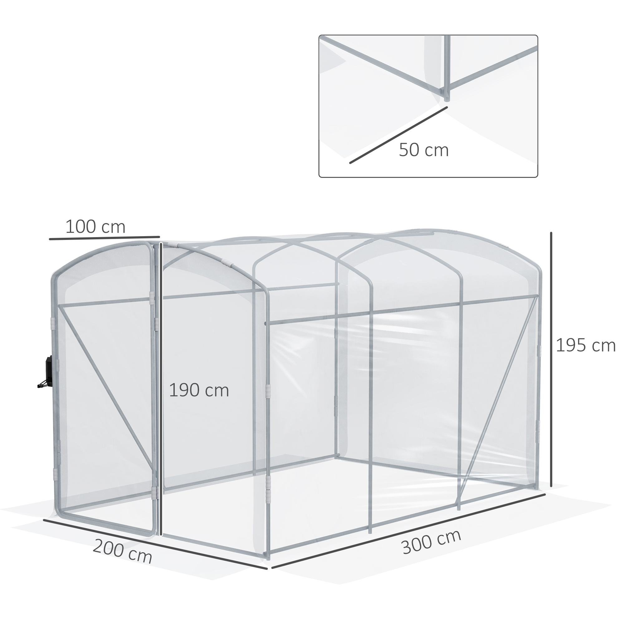 - Gesamtabmessungen: 300L x 200B x 195H cm