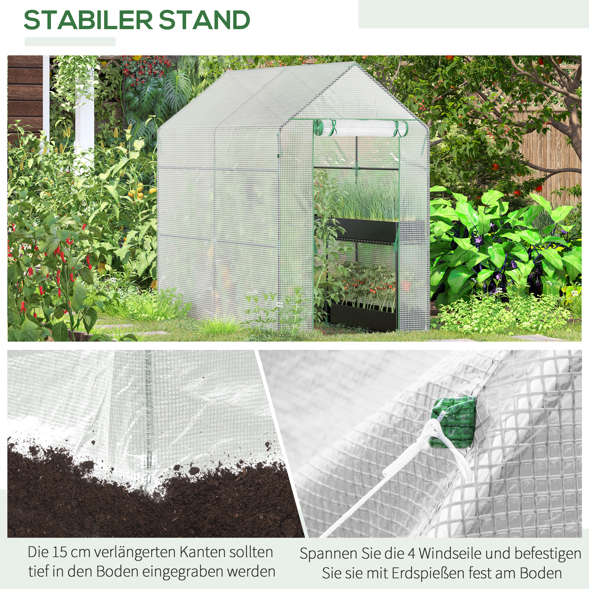 - UV- und witterungsbeständige PE-Kunststoffabdeckung lässt das Sonnenlicht durch und schützt Pflanzen und Nutzpflanzen. Überlanger Boden zum Eingraben in die Erde