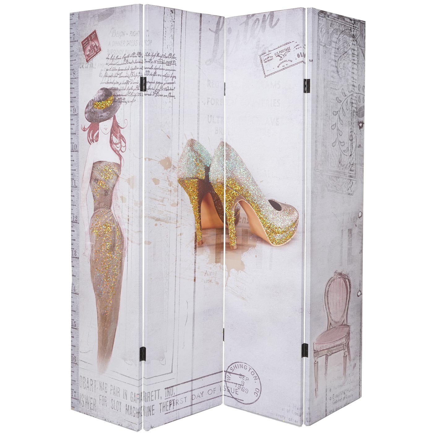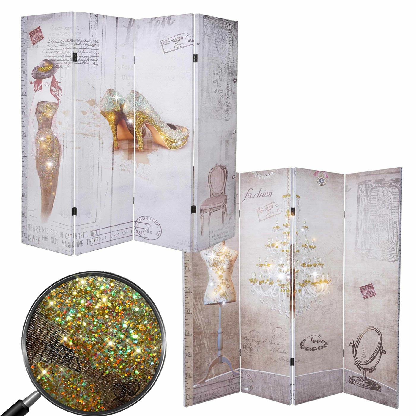 Foto-Paravent Vintage Trennwand Glitzer Retro Fashion ~ 180x160cm