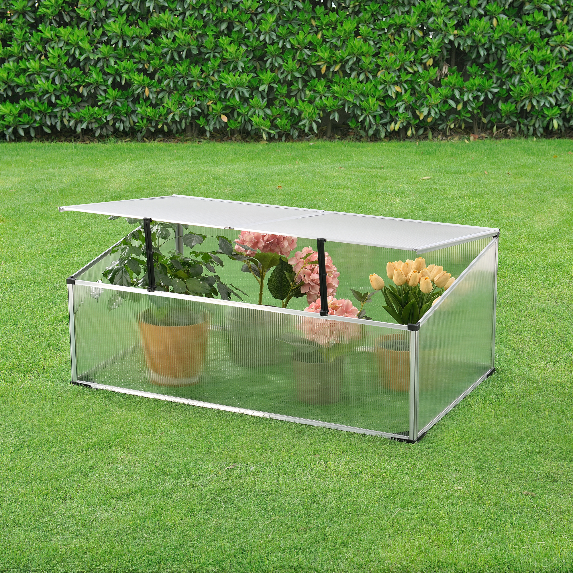 Das Mini Gewächshaus lässt sich schnell und einfach auf- und abbauen. Die lichtdurchlässigen Hohlkammerplatten sorgen für ausreichend Licht und das aufklappbare Dach für eine gute Belüftung. Außerdem ermöglicht der kleine Pflanzkasten Ihnen bereits in kalten Monaten eine Aufzucht Ihrer Sprösslinge und schützt diese darüberhinaus vor Wind und Wetter.