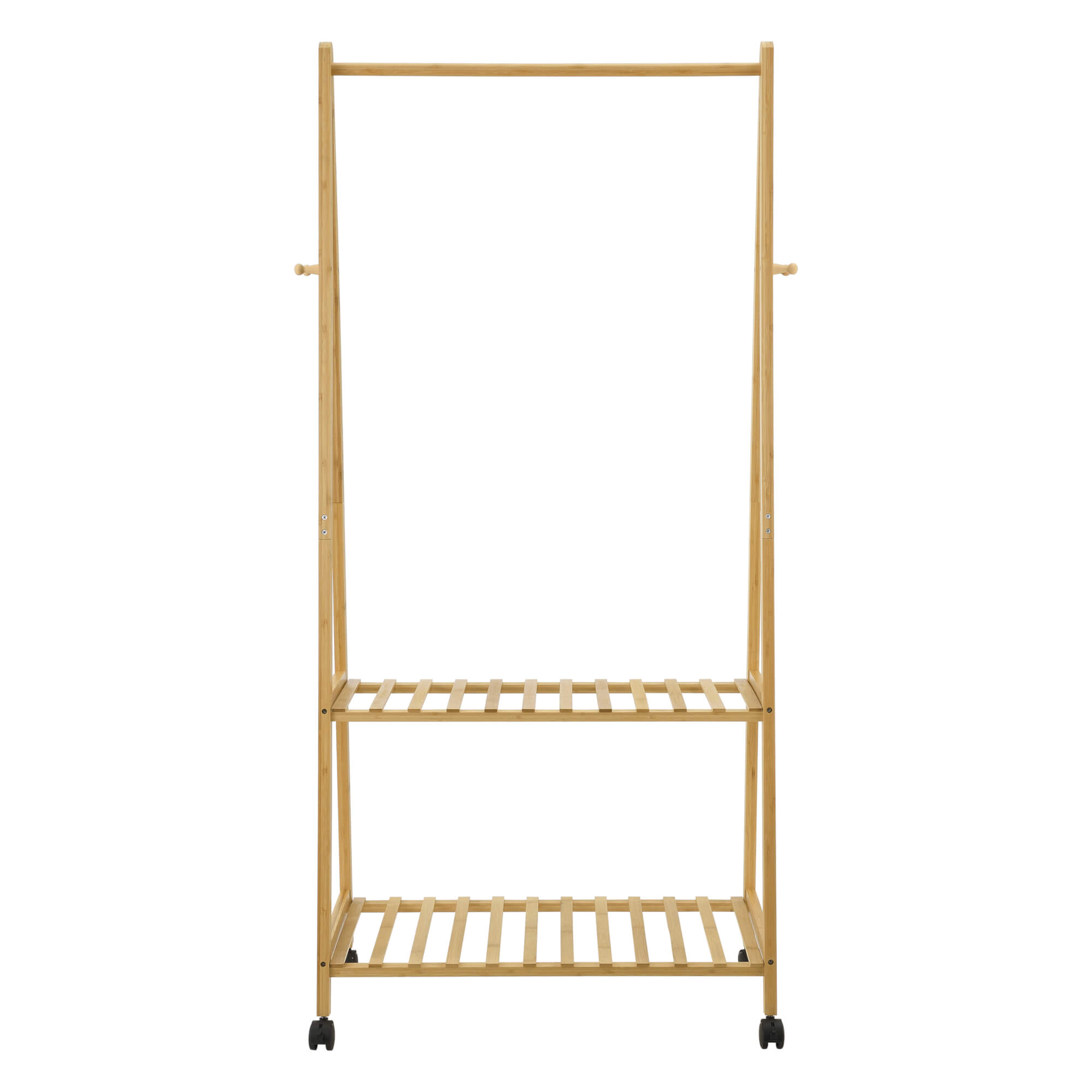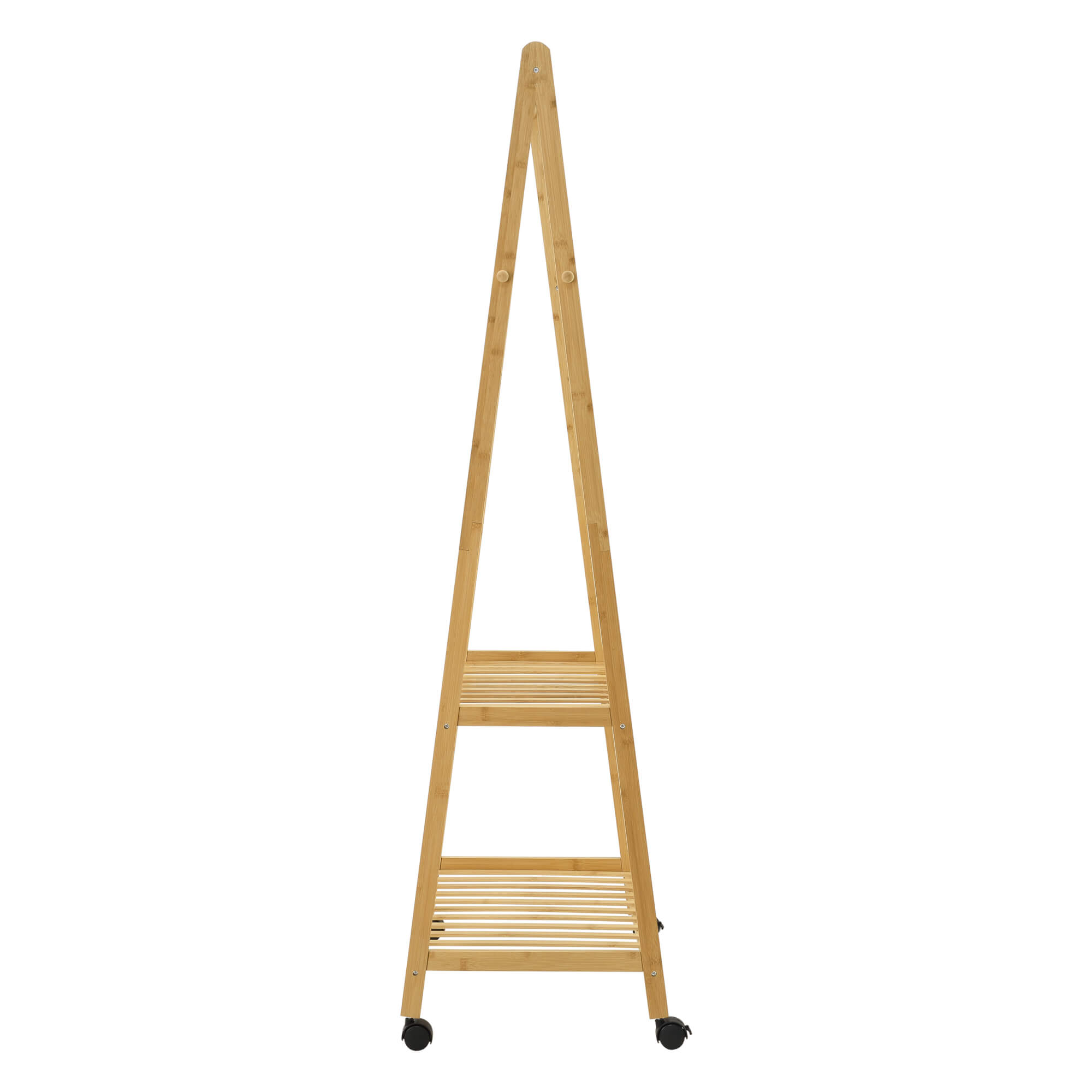 Der rollbare und platzsparende Garderobenständer ermöglicht Ihnen Ihre Lieblingsstücke immer griffbereit zu haben. Die zwei Ablagen bieten einen idealen Platz für bspw. Schuhe oder Taschen. Außerdem bietet er durch die Kleiderstange und die 4 Kleiderhaken viel Platz zum Aufhängen Ihrer Kleidung.
