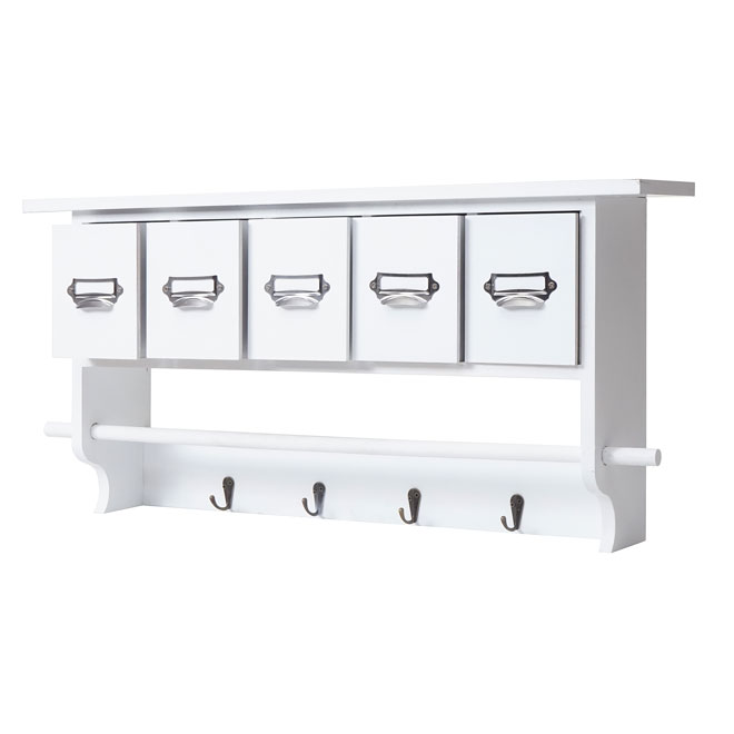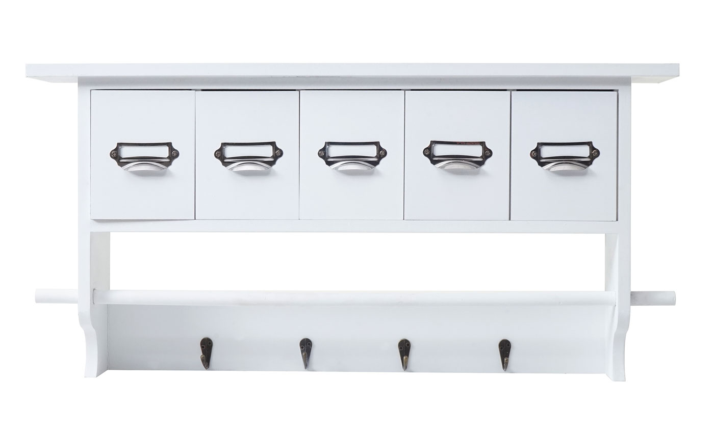 Garderobe Wandgarderobe mit 5 Schubladen Vintage weiss