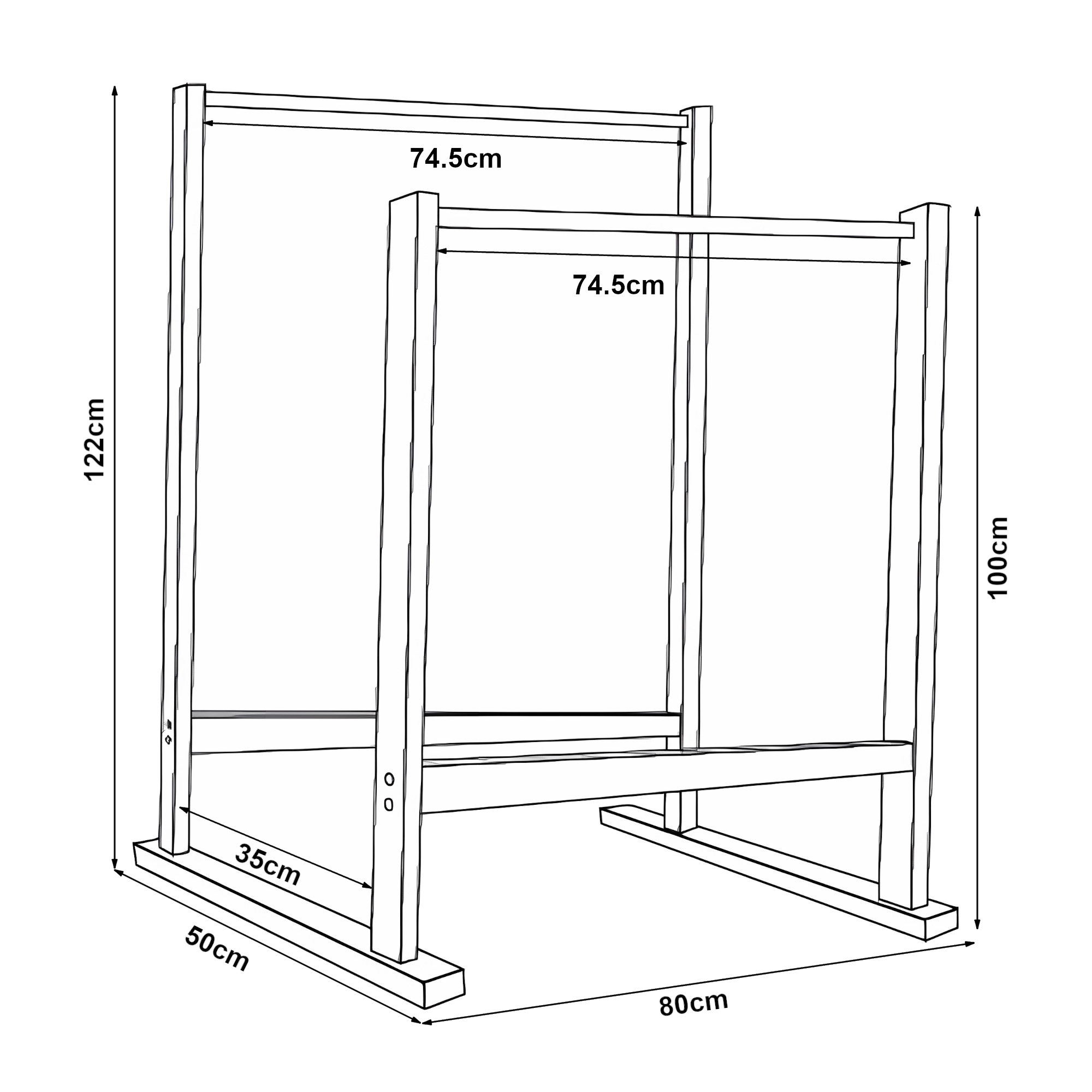 Der Kleiderständer bietet nicht nur eine übersichtliche Aufbewahrung Ihrer Kleidungsstücke, sondern setzt auch stilvolle Akzente in Ihrem Zuhause. Ausgestattet mit zwei Kleiderstangen, bietet dieser Ständer großzügigen Platz für Jacken, Mäntel und Accessoires.