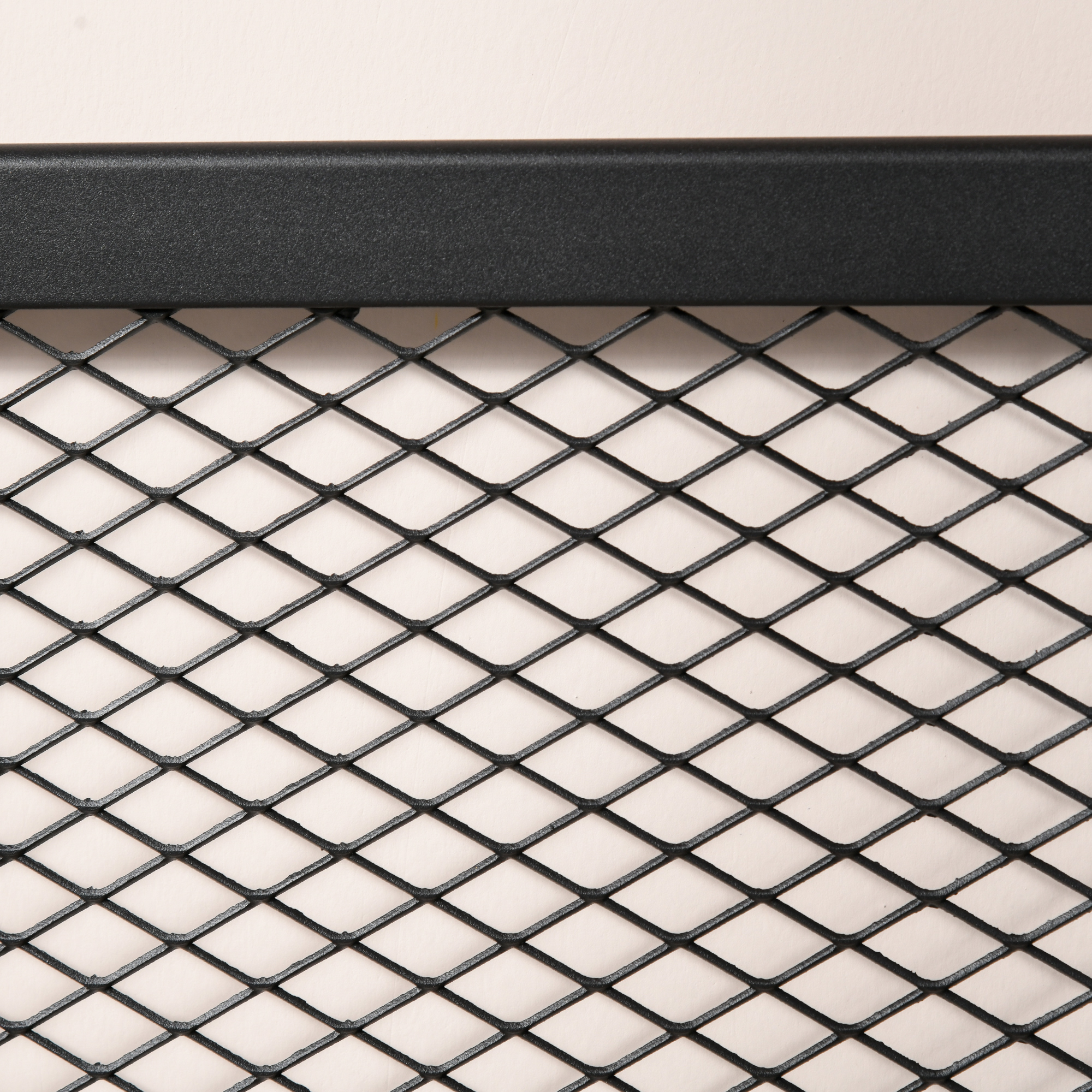 Naturholzfarbene Paneele mit schwarzem Metallrahmen und Netzgitter verleihen das Mantelgestell ein stilvolles Aussehen. Wo auch immer Sie ihn platzieren, er wird sich perfekt in den Stil Ihres Raumes einfügen. Es ist geeignet für Flur, Schlafzimmer, Wohnzimmer und andere Orte.