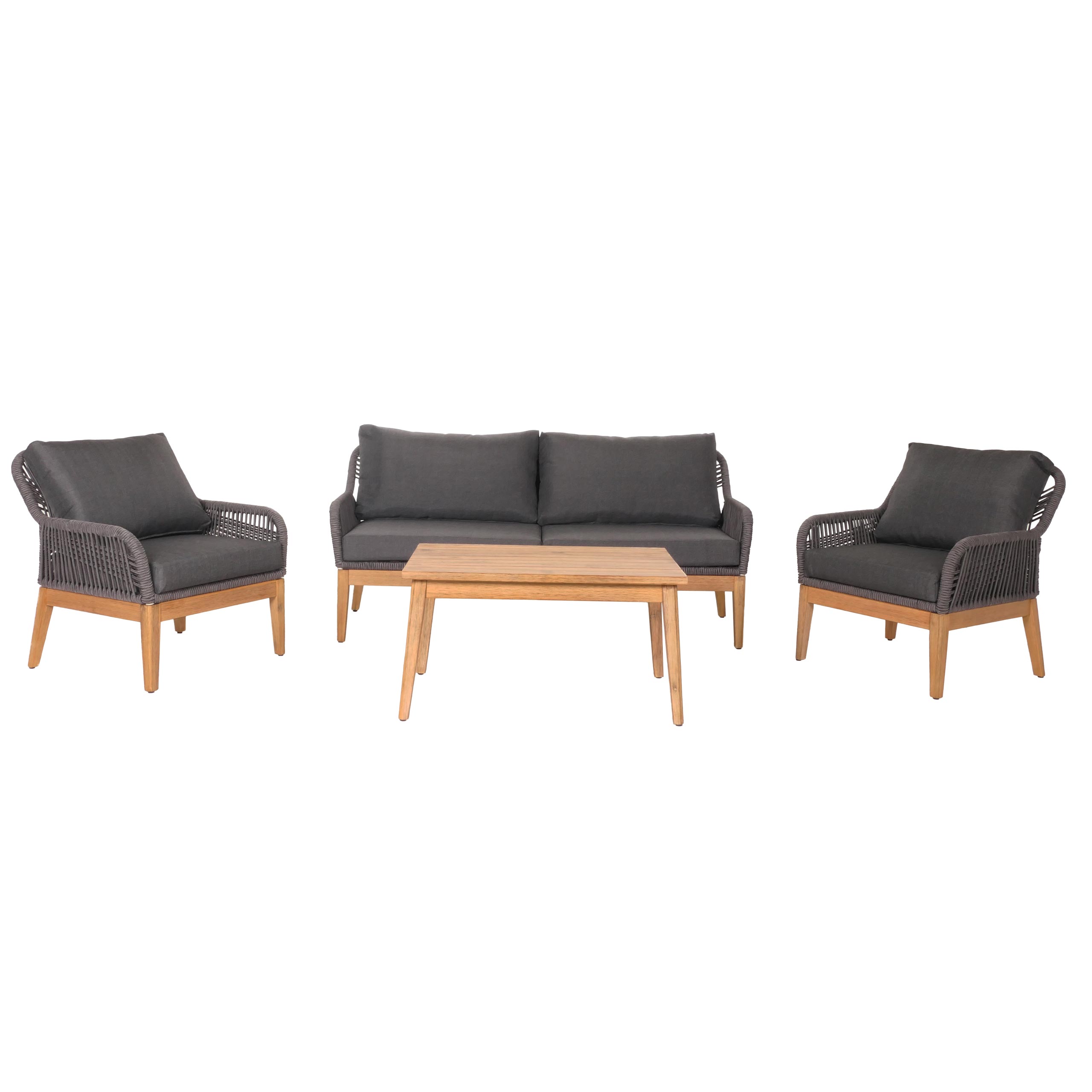 Elegante Gartengarnitur aus Akazienholz mit Seilgeflecht – Ihr neues Lounge-Set für Balkon. Terrasse & Garten