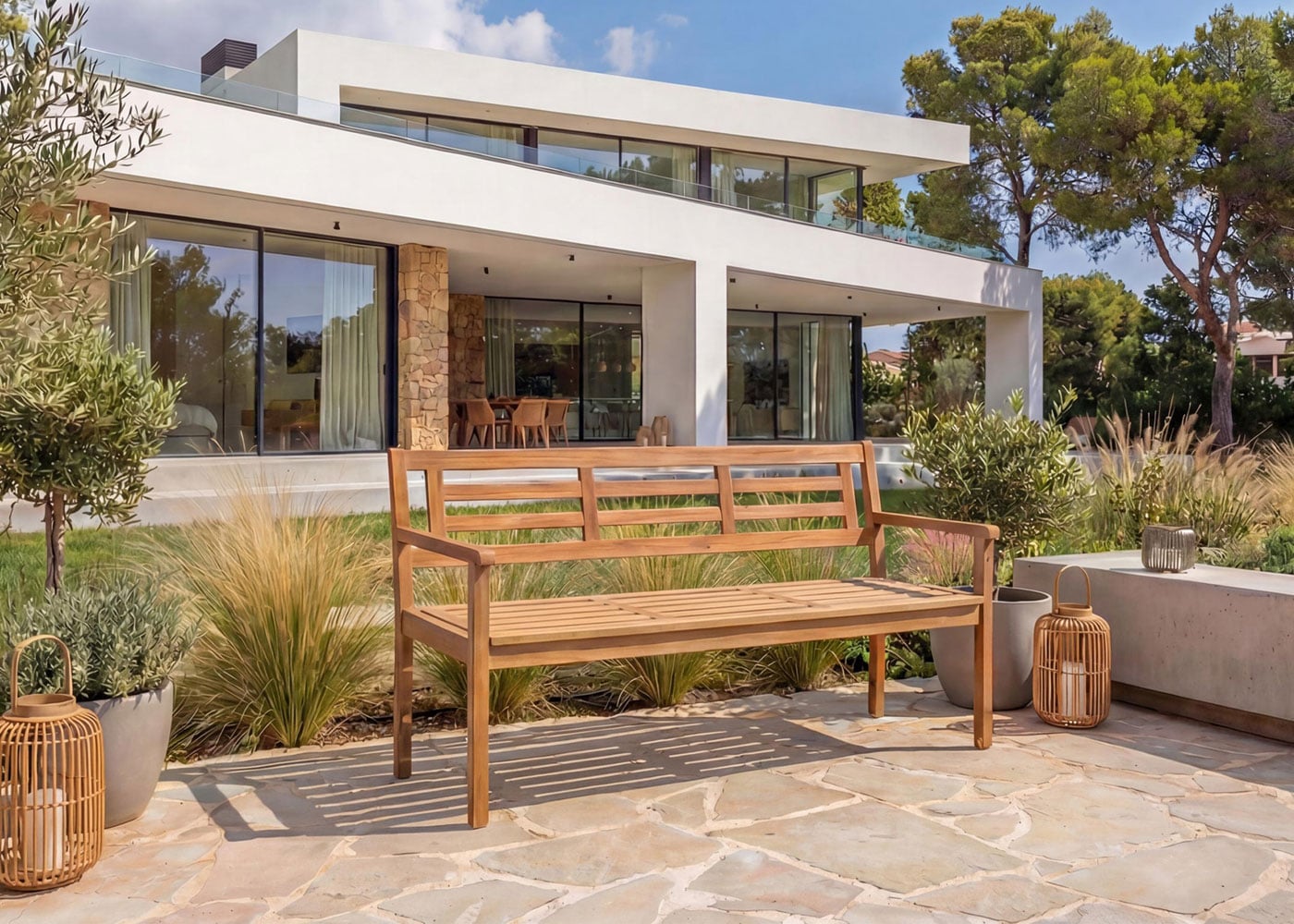 Stilvolle und langlebige Gartenbank aus massivem Akazienholz für den Außenbereich