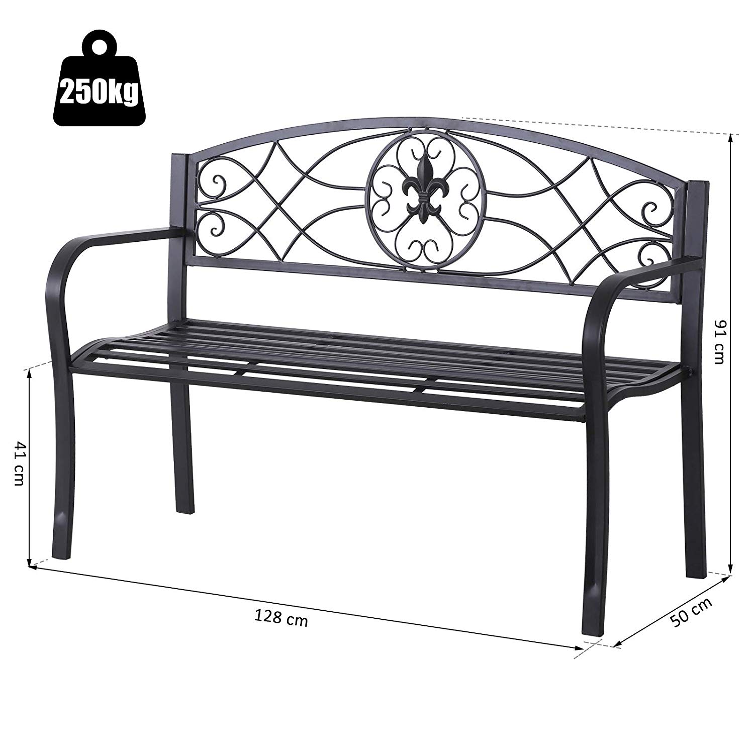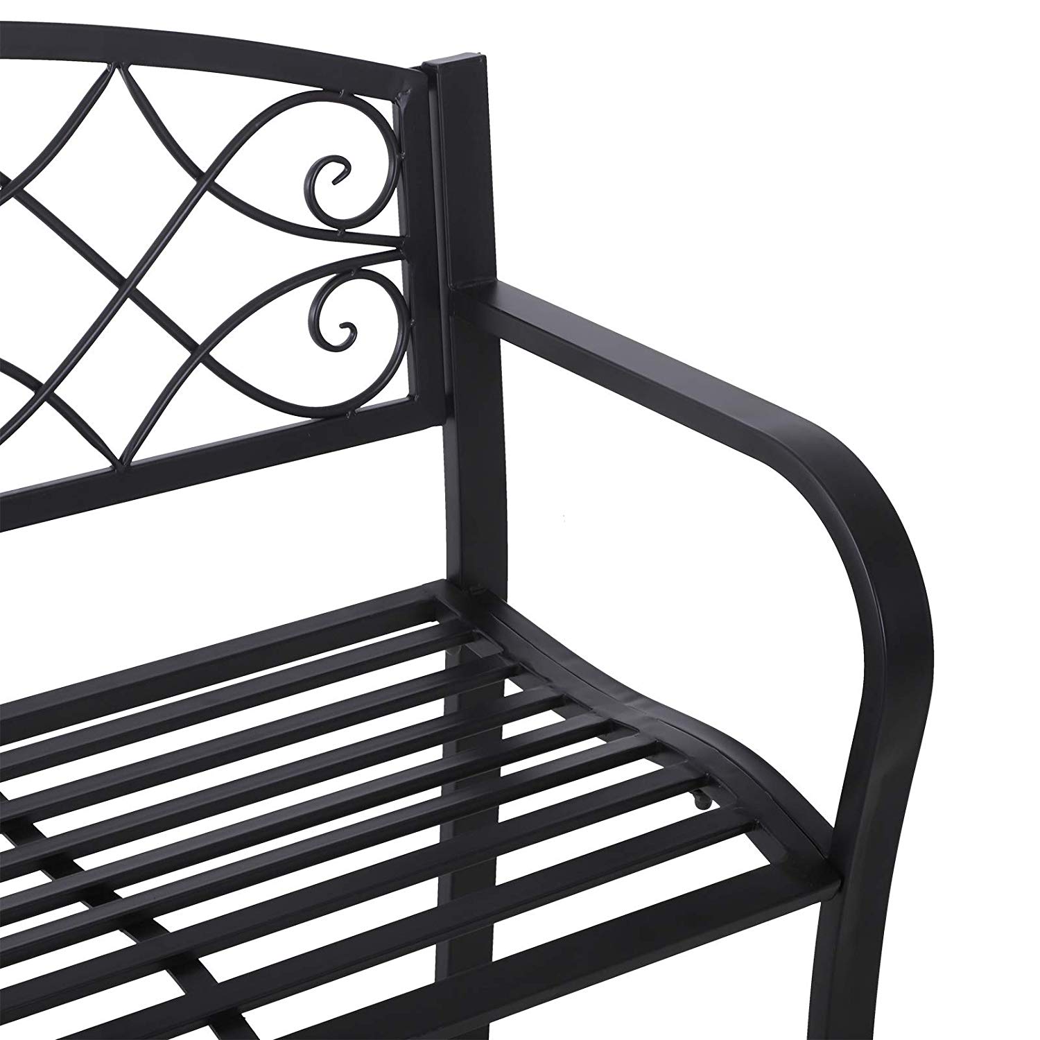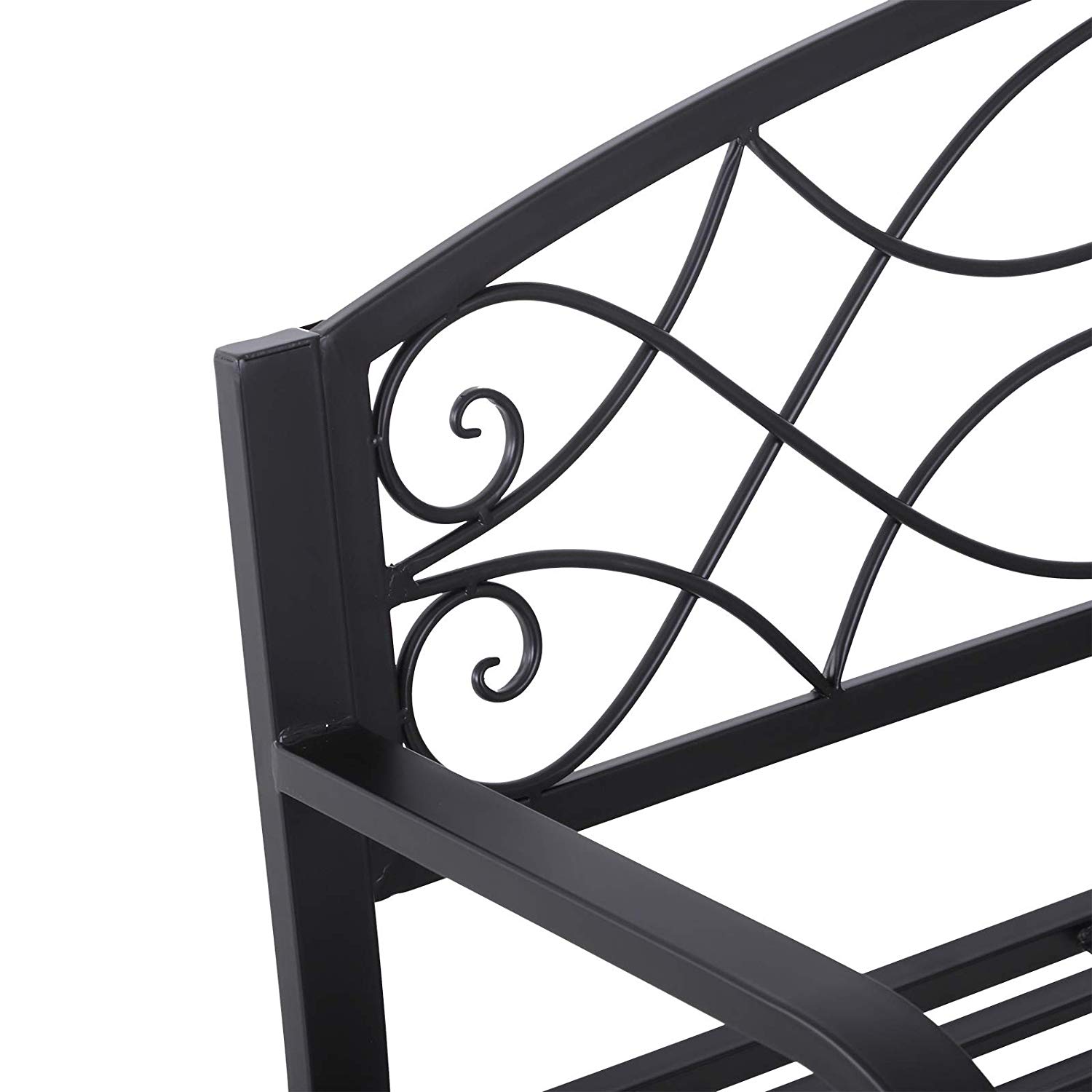 Diese dekorative Gartenbank in Schwarz ist mit ihrem nostalgischen Design und kunstvoller Verarbeitung ein absolutes Highlight unter den Gartenmöbeln und sollte nicht in Ihrem Garten fehlen. Die Bank bietet Platz für zwei Personen und hat einen witterungsbeständigen Metallrahmen. Die Gartenbank passt nicht nur in den Garten, sondern auch auf die Terrasse oder den Balkon, wo Sie durch Stabilität und Robustheit Ihnen lange Freude bringen wird. Die perfekte Wahl für einen gemütlichen Kaffee in der Sonne!
