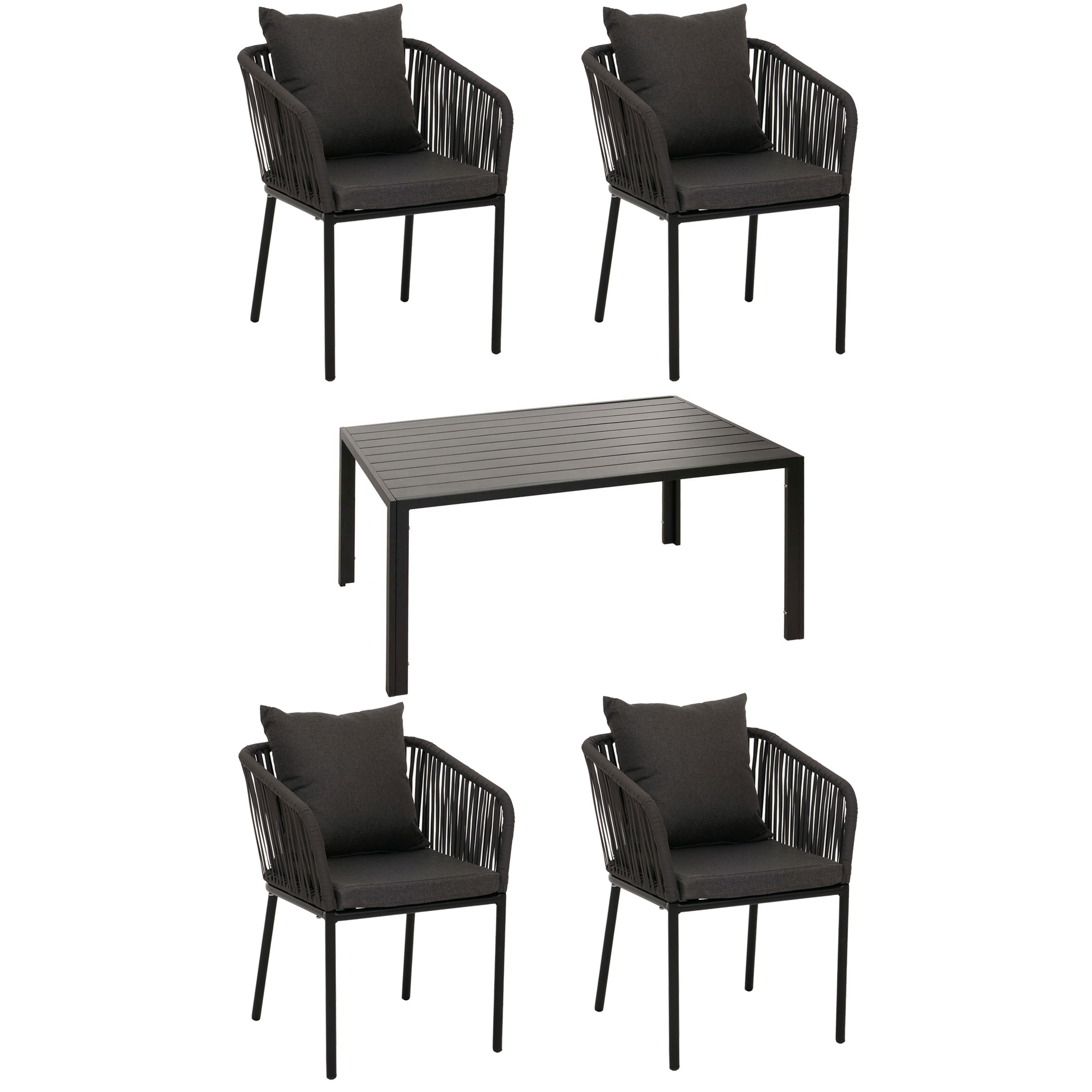 Gartengarnitur 5-teilig – Moderner Alu-Esstisch mit 4 Stühlen und Sitzkissen