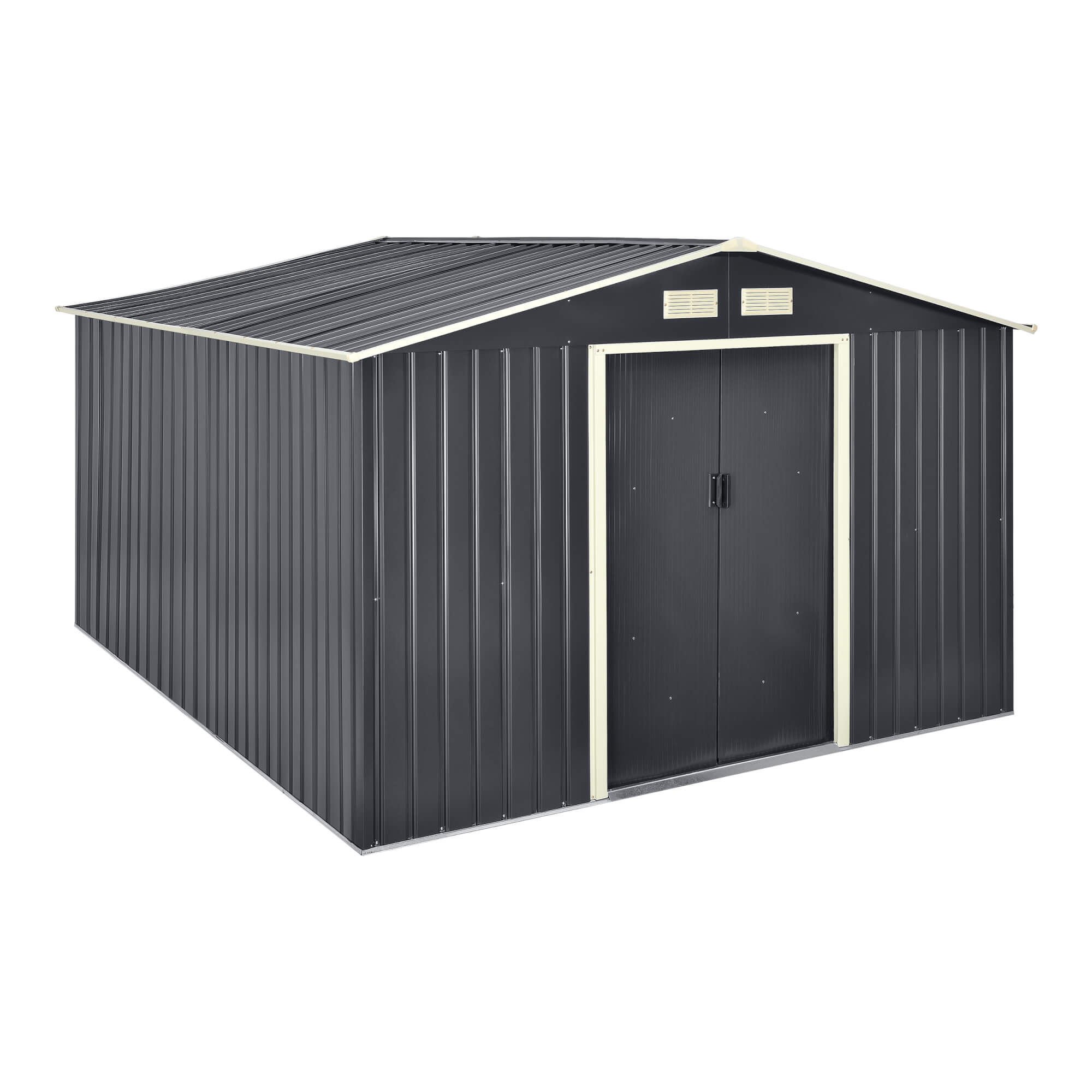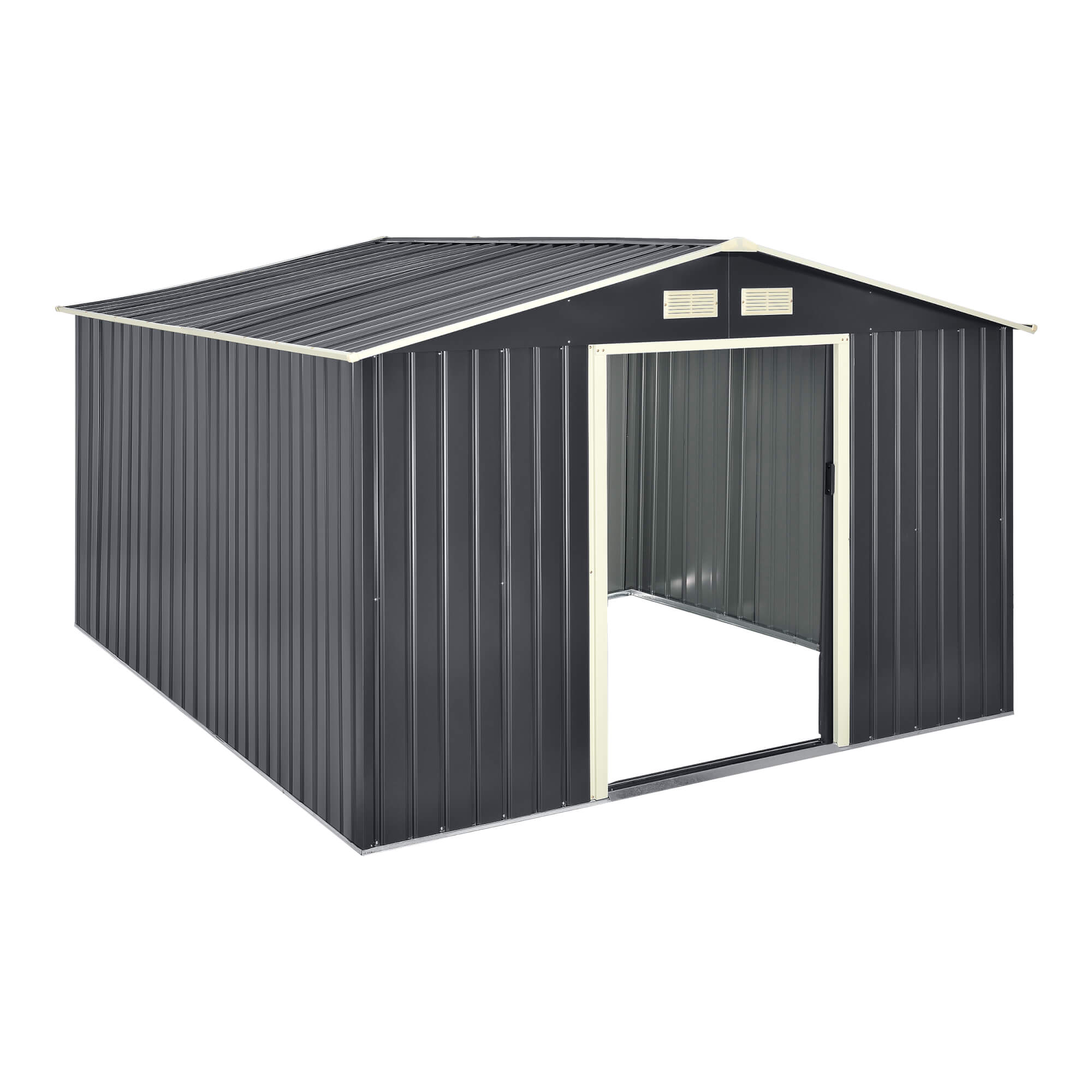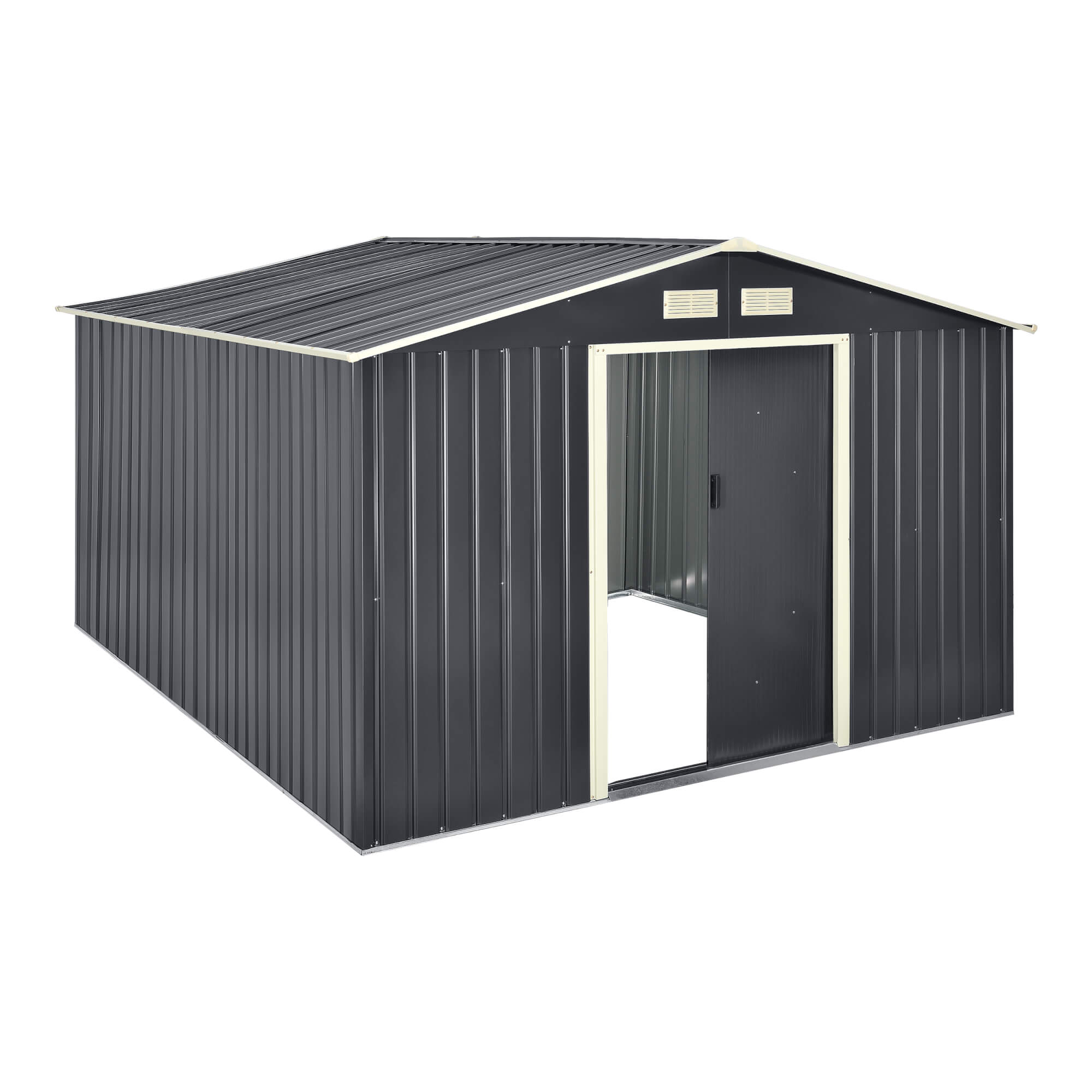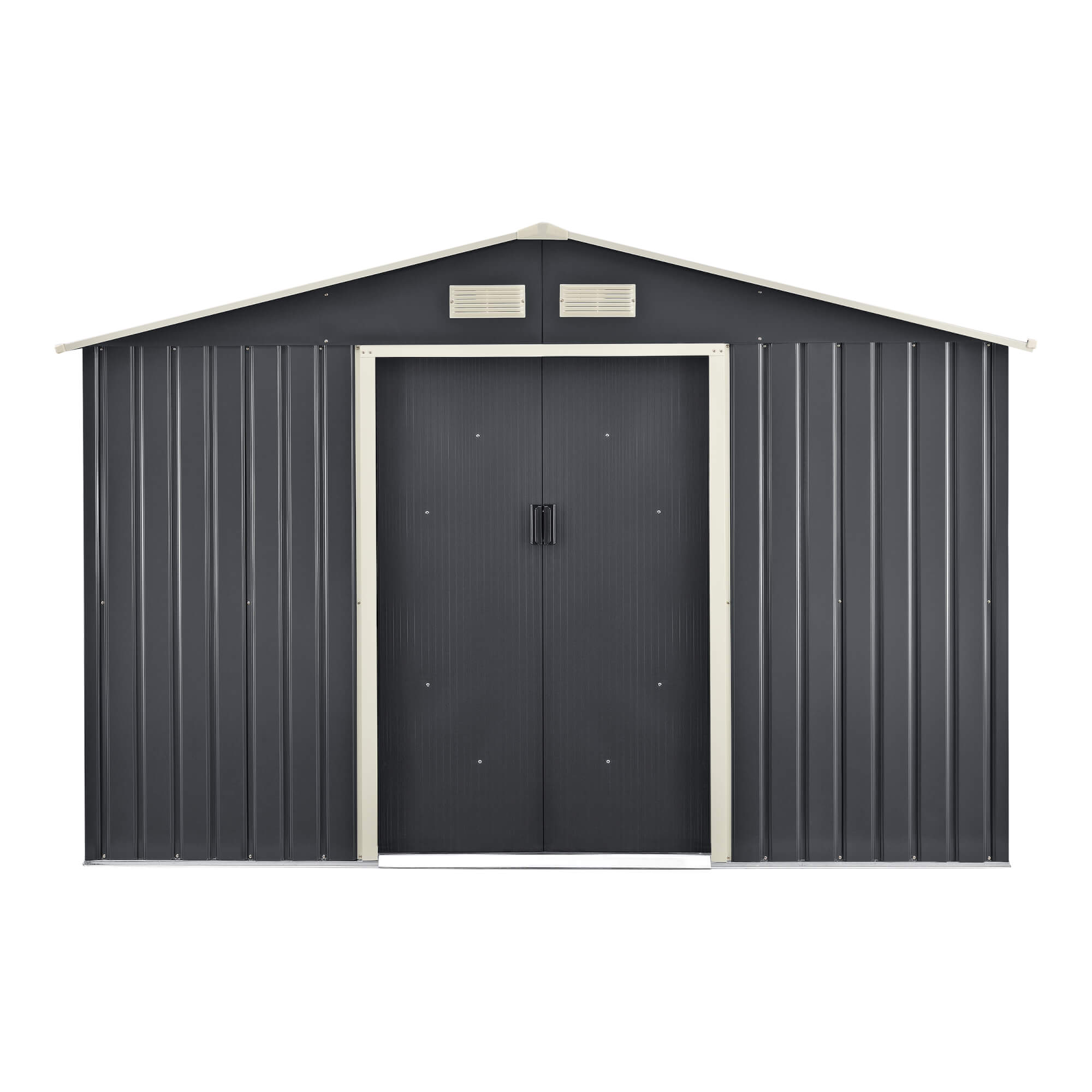 Der Geräteschuppen ist aus feuerverzinktem Stahlblech gefertigt und somit besonders robust und wetterbeständig. Der Metallrahmen sorgt für einen festen Stand und das stabile Satteldach lässt Regenwasser optimal ablaufen.