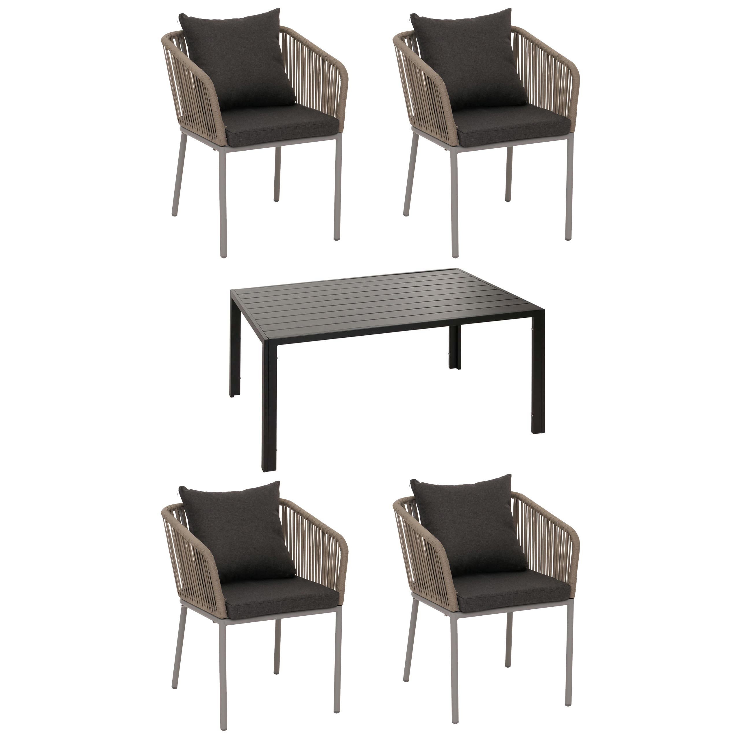 Gartengarnitur aus Aluminium mit Seilgeflecht – 5-teiliges Outdoor-Set