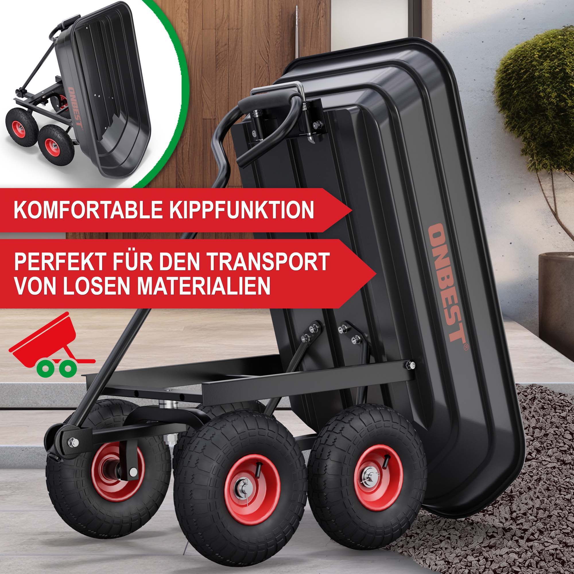 - Perfekt für den Transport von Erde, Sand, Kies, Holz, Steinen, Rindenmulch & Gartenabfällen